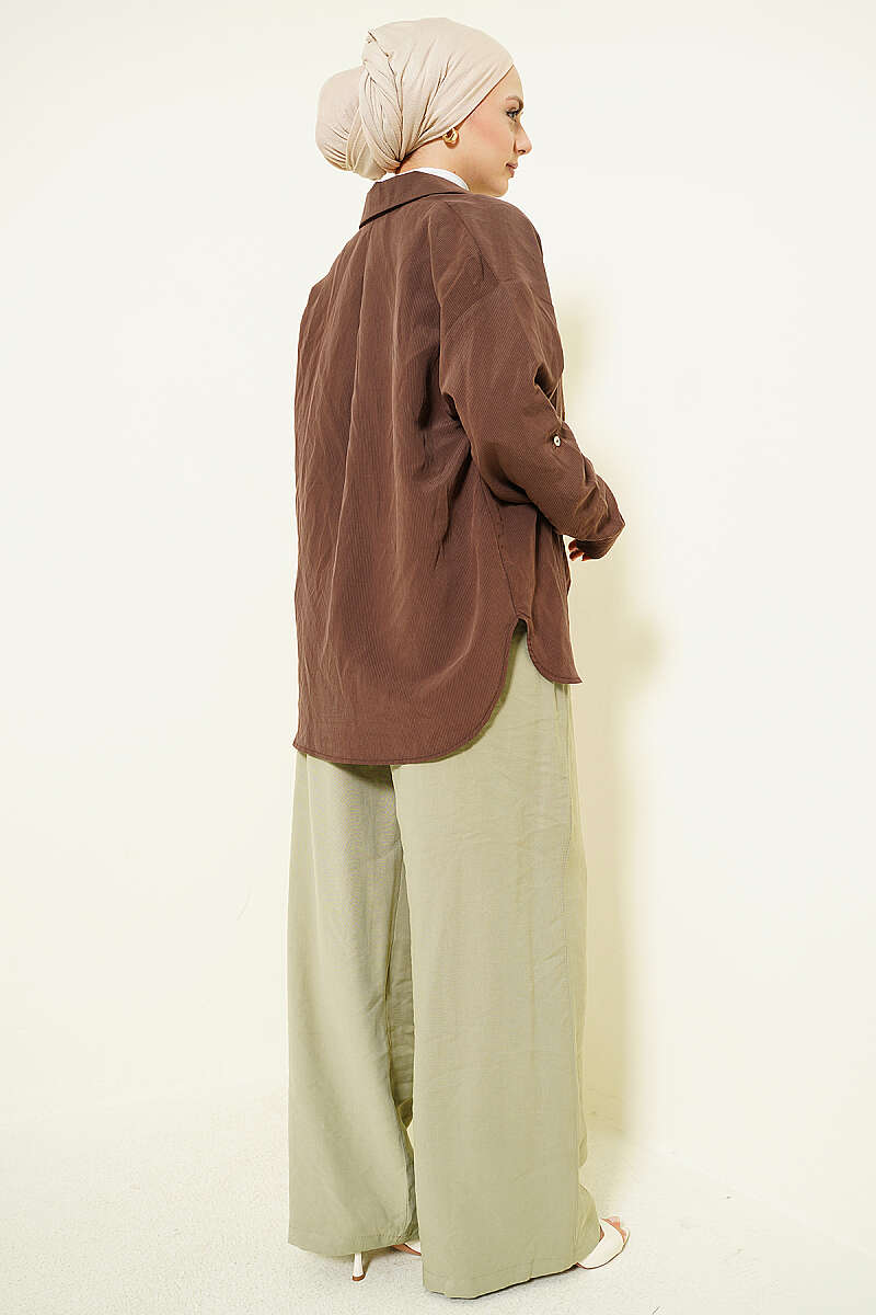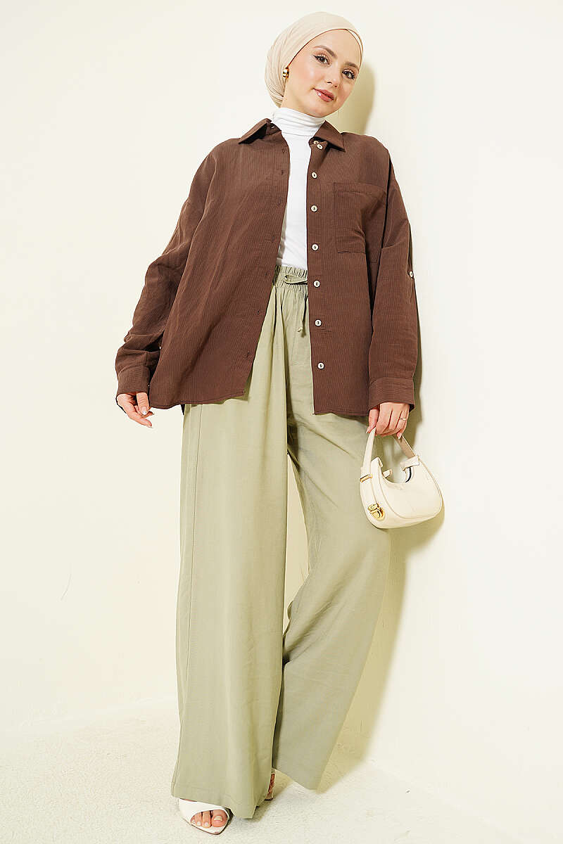 Yarım Bel Lastikli Palazzo Pantolon Kahve