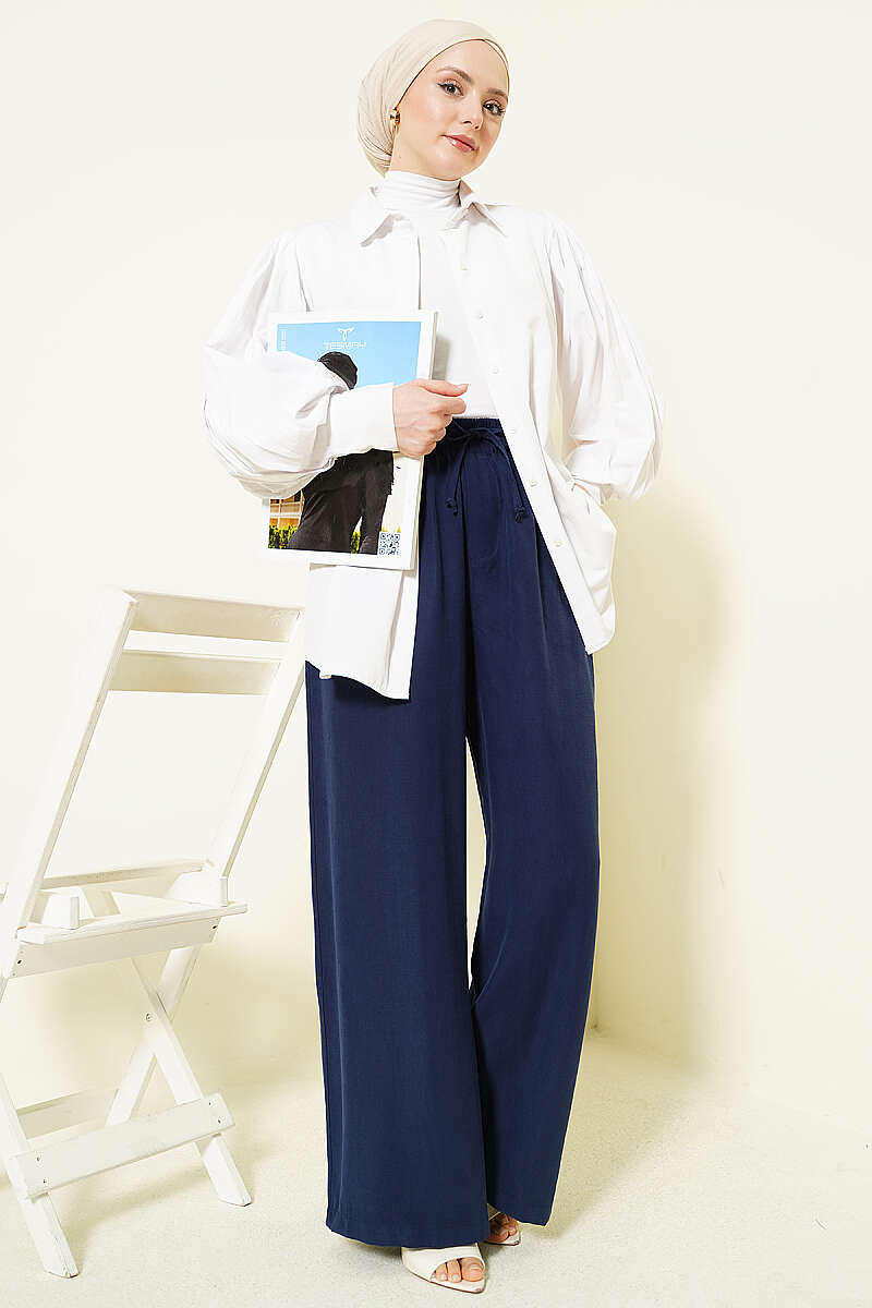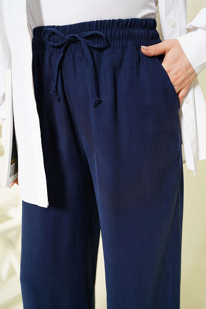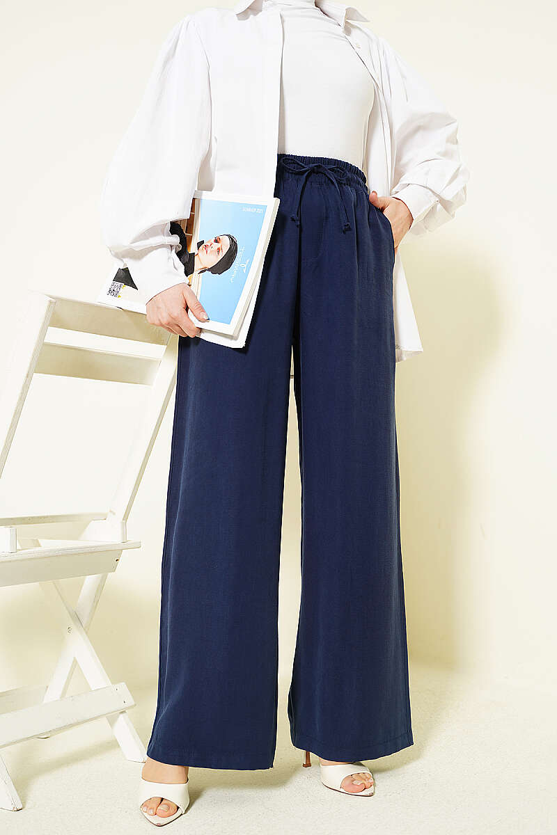 Geniş Paça Lastikli Tensel Pantolon Lacivert