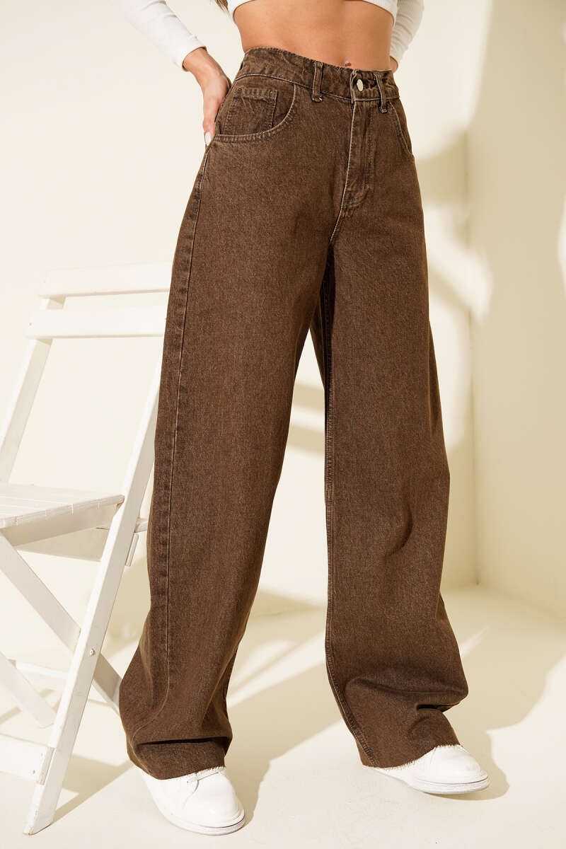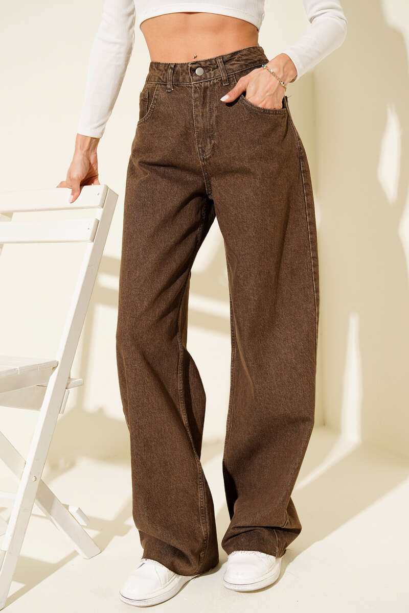 Brit Düğme Detaylı İp Kuşaklı İkili Takım Kahve