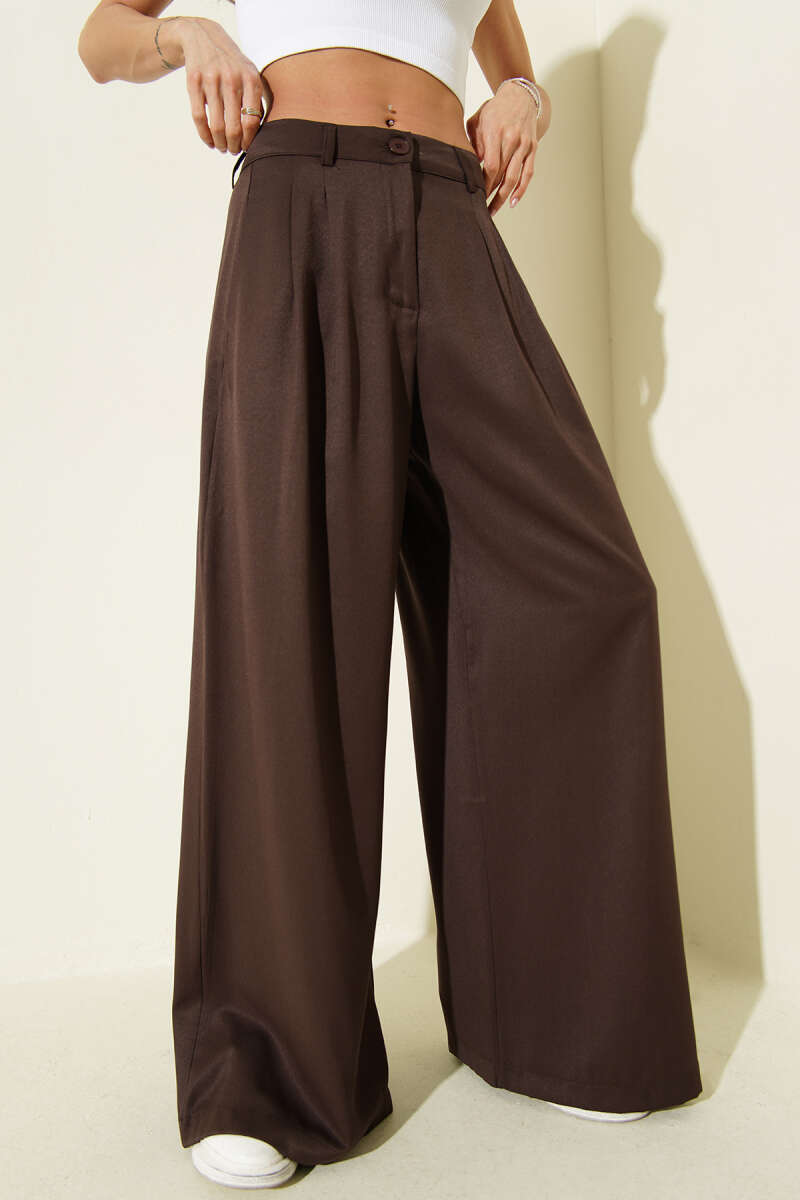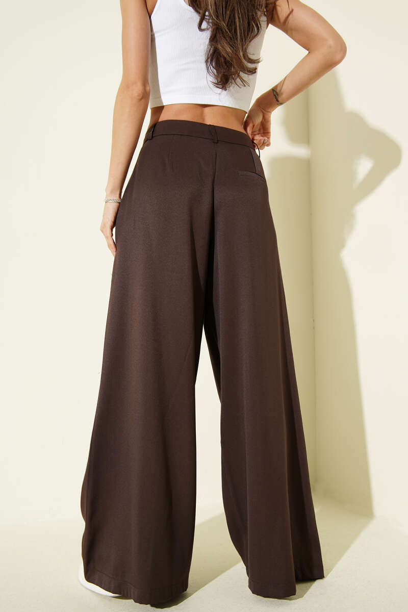 Geniş Paça Pileli Salaş Pantolon Kahve