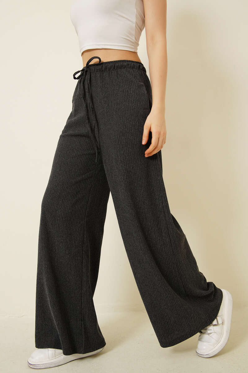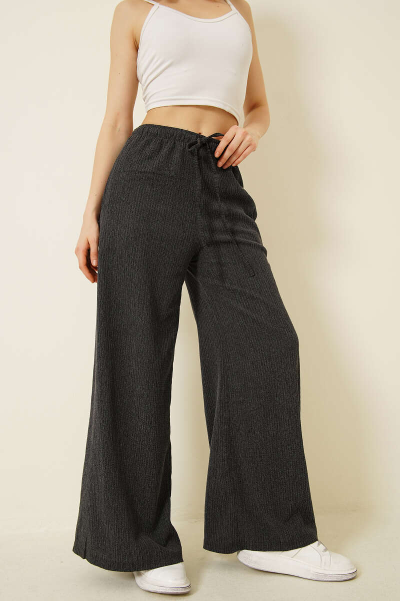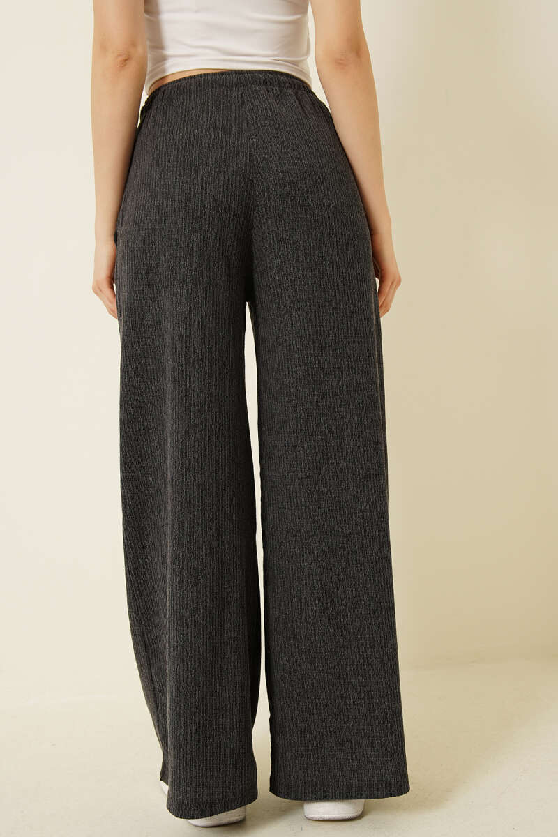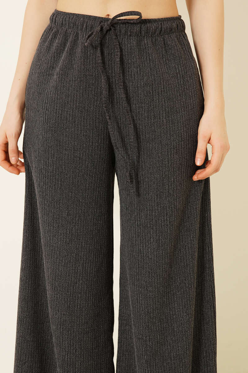 Geniş Paçalı Ağaç Kabuğu Pantolon Füme