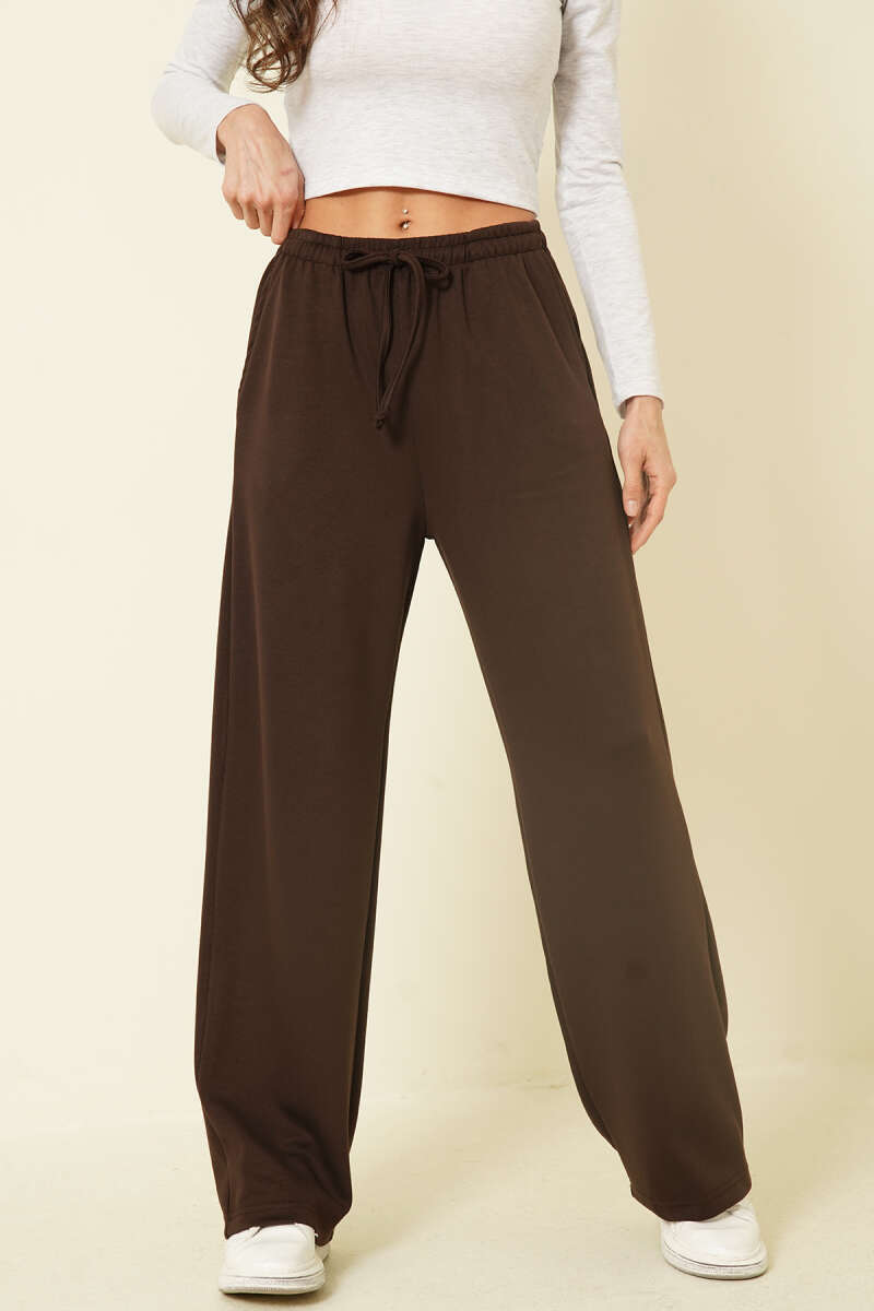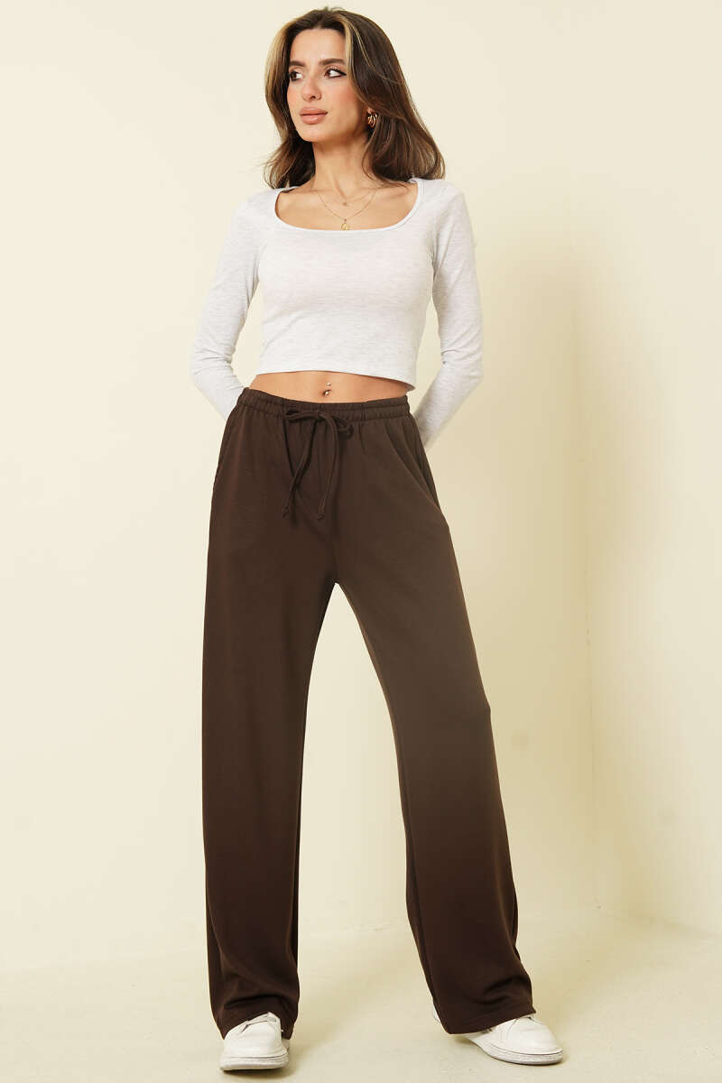 İspanyol Paça Bel Lastikli Dabıl Pantolon Füme