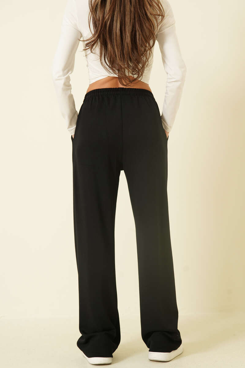 Geniş Paçalı Cepli Loyşa Pantolon Siyah