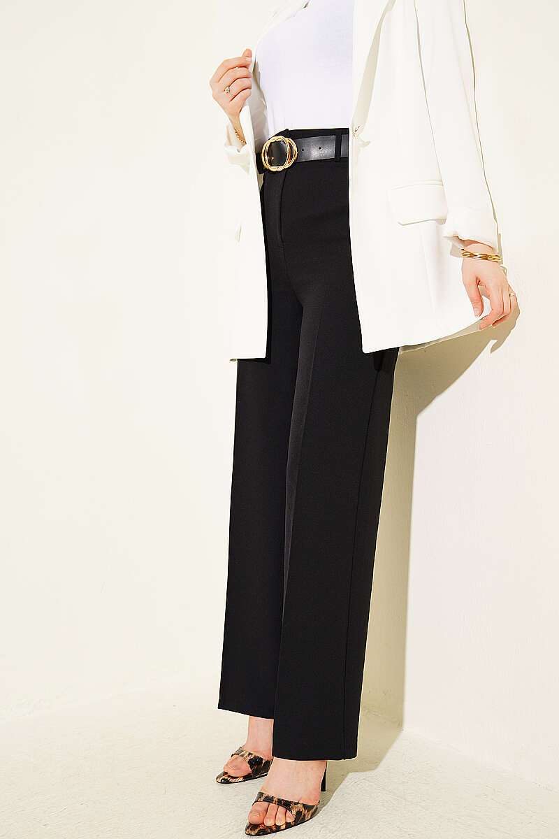 Geniş Paçalı Kemerli Pantolon Siyah