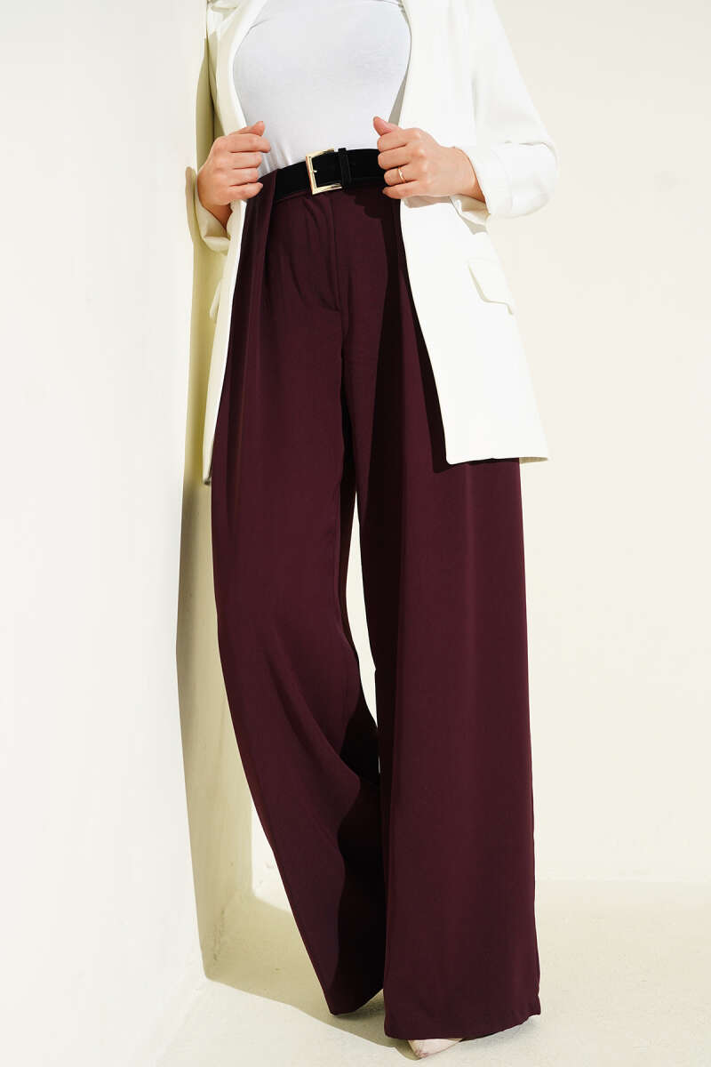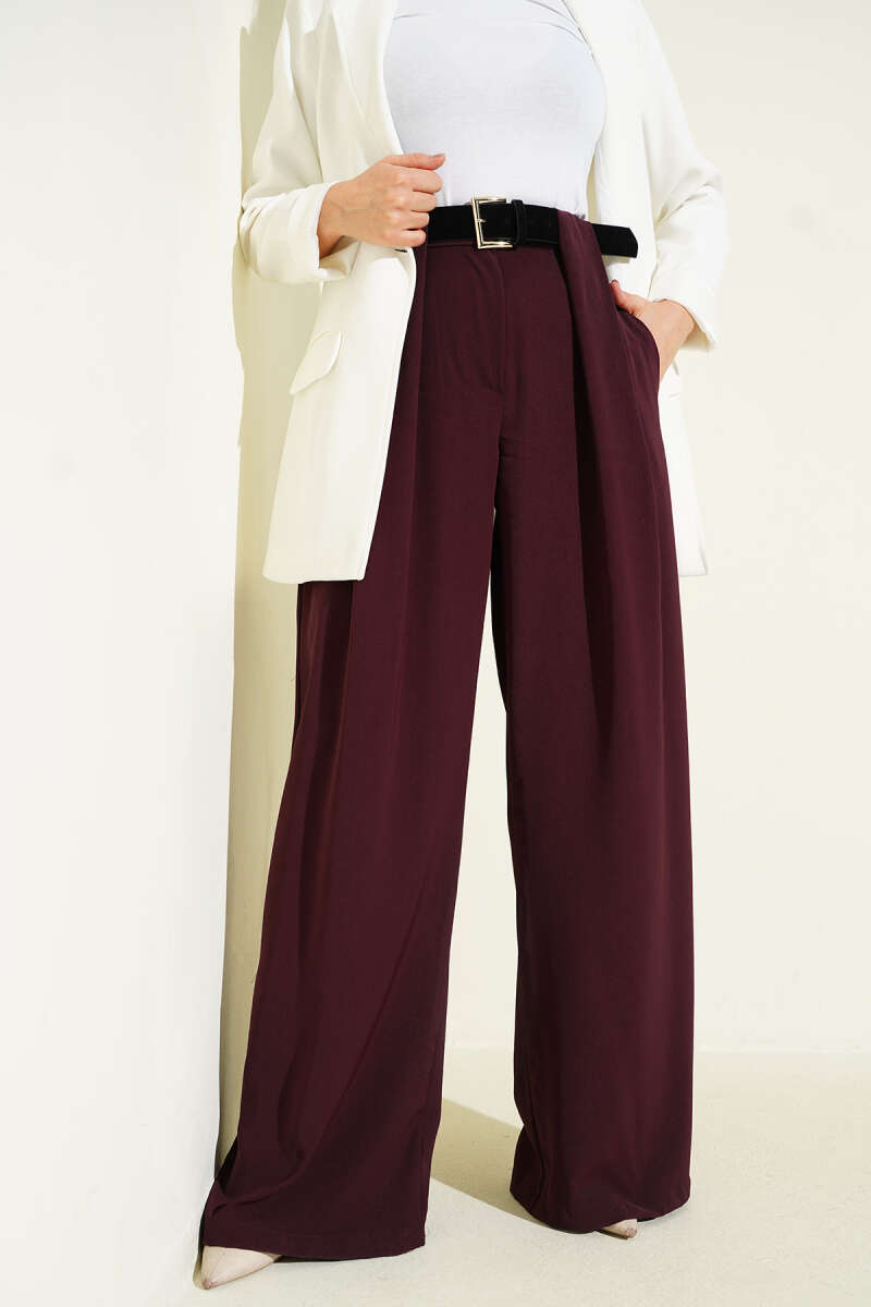 Geniş Paça Kemerli Kumaş Pantolon Kahve