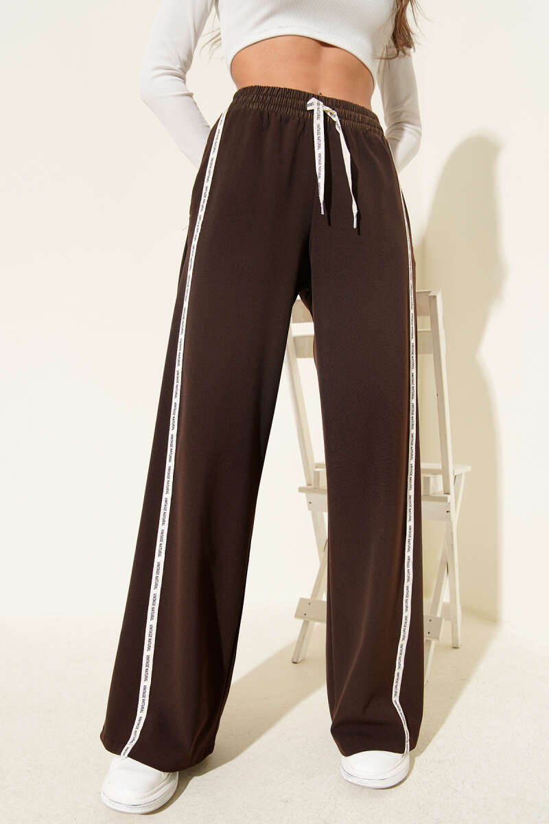 Geniş Paçalı Yanı Şeritli Pantolon Kahve