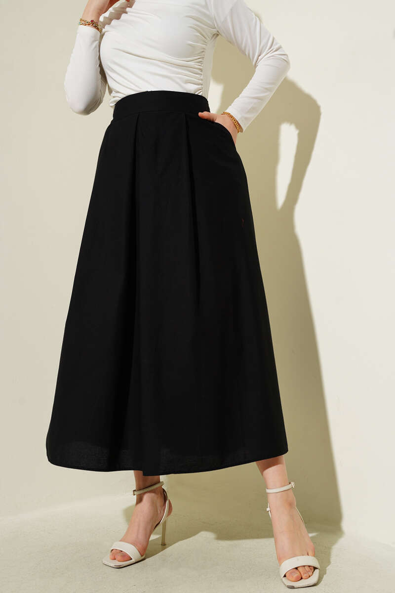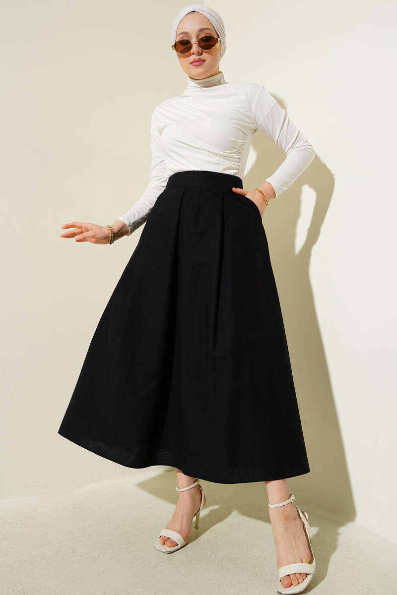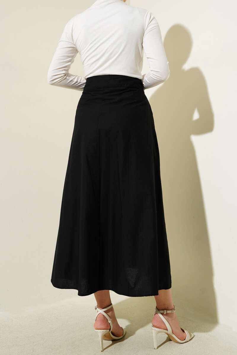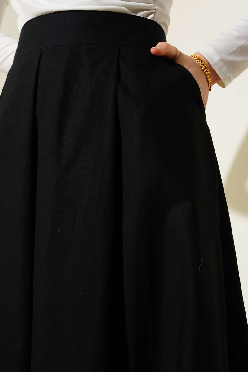 Dikişli Fitilli Kaşe Etek Siyah