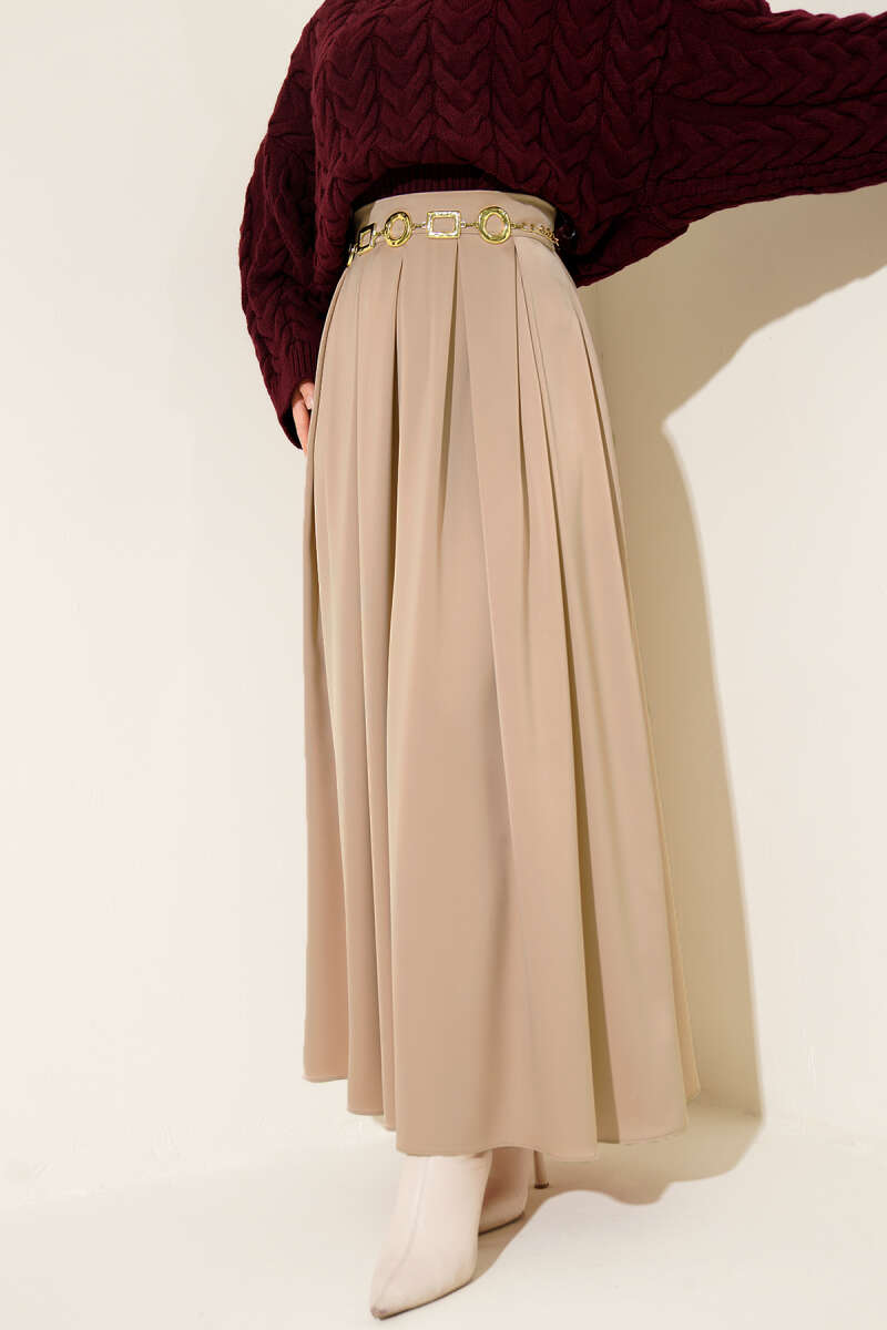 Bel Lastikli Kloş Scuba Etek Bej