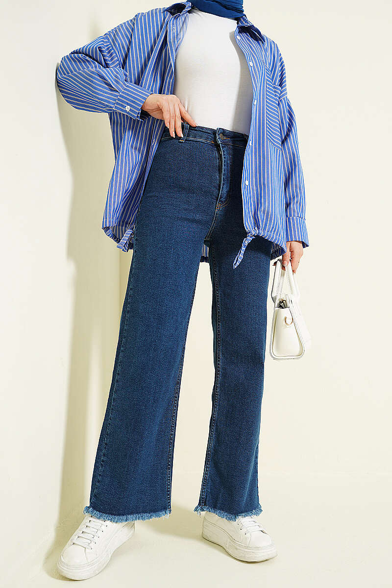 Geniş Püskül Paçalı Kot Pantolon Kot