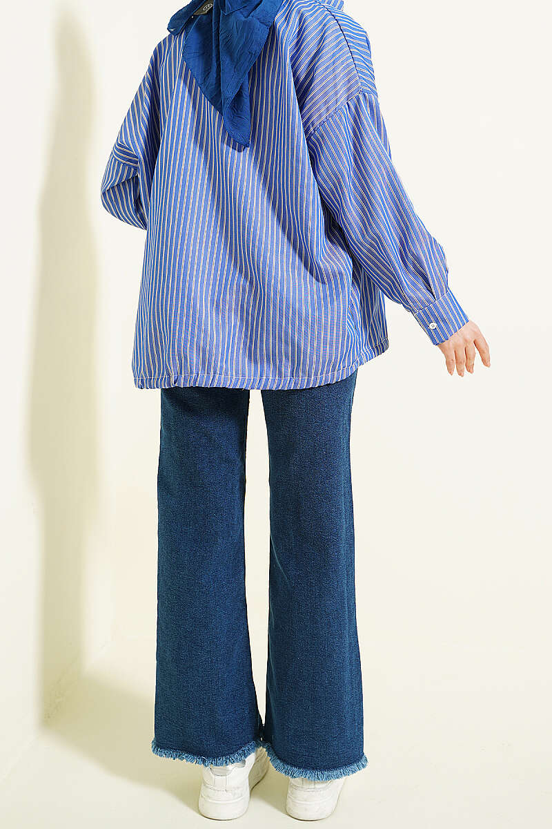 Geniş Paçalı Büyük Beden Kot Palazzo Pantolon Kot Mavisi