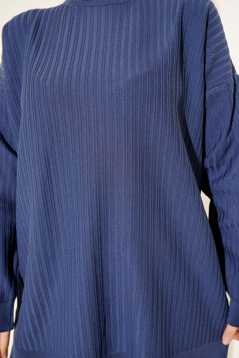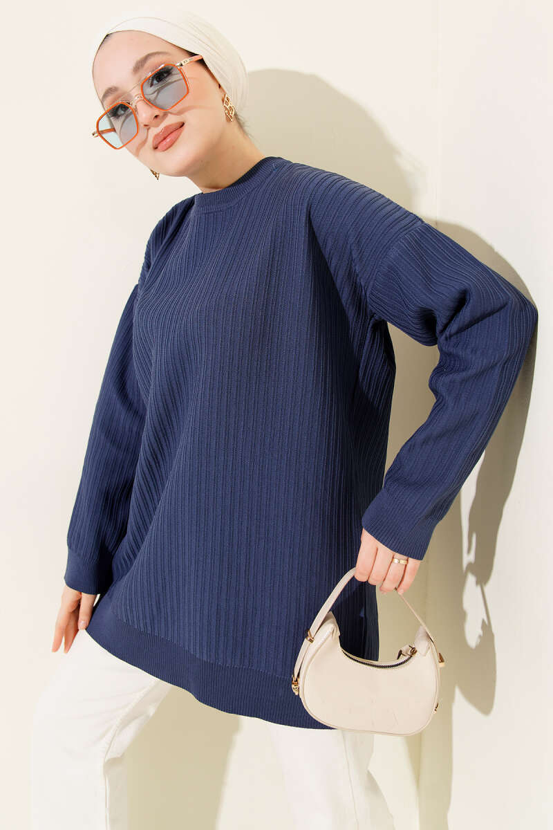 Yatay Çizgi Detaylı Triko Tunik Lacivert