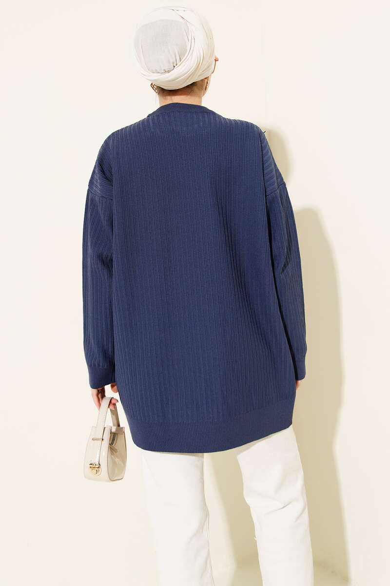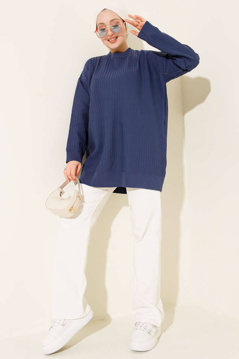 Baklava Kabartma Triko Tunik Lacivert