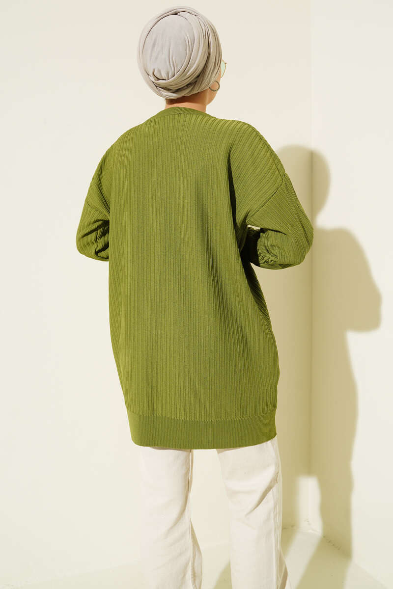 Örgü Kabartma Desenli Uzun Triko Hırka Gri