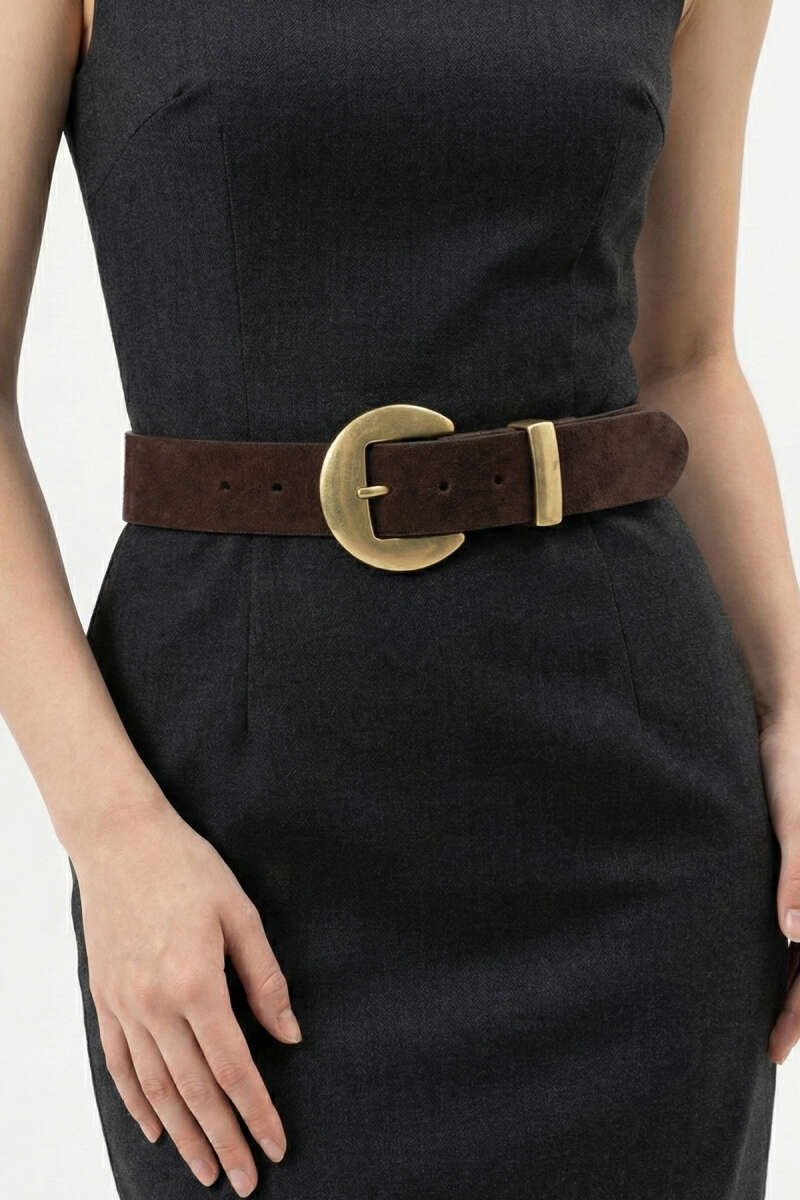 Geniş Tokalı Kemer Kahve Süet