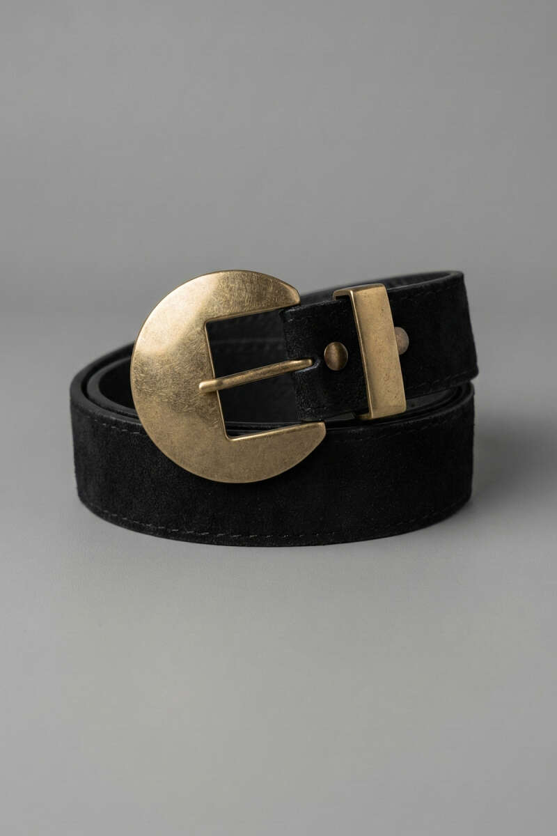 İç İçe Gold Tokalı Kemer Siyah Süet