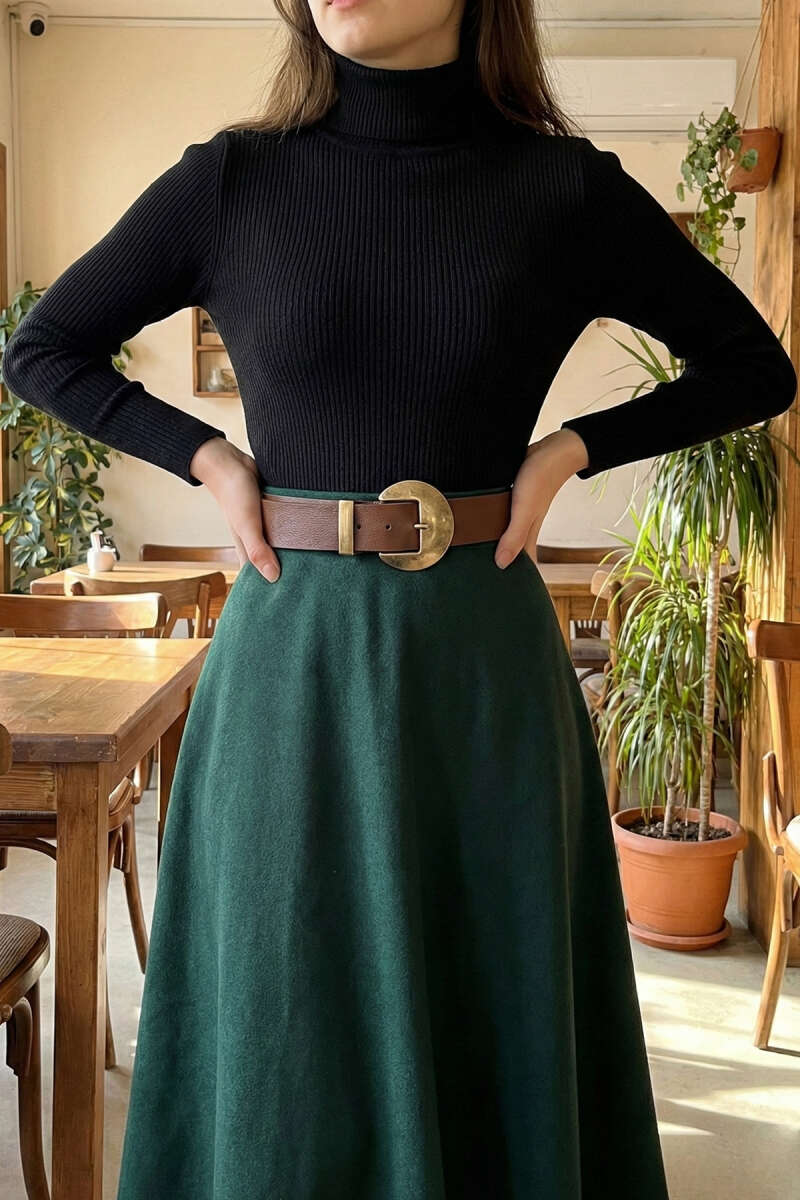 İç İçe Gold Tokalı Kemer Siyah Süet