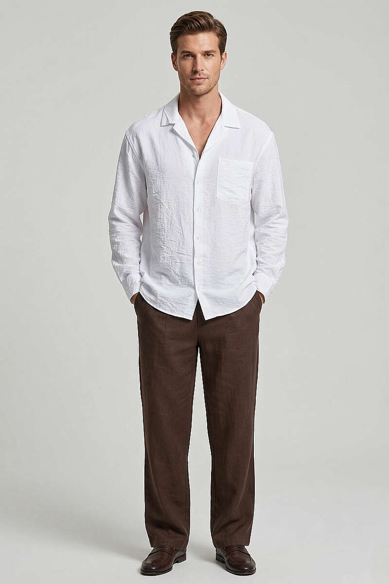 Manşet Düğmeli Tensel Erkek Gömlek Kahve