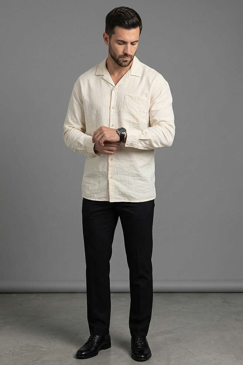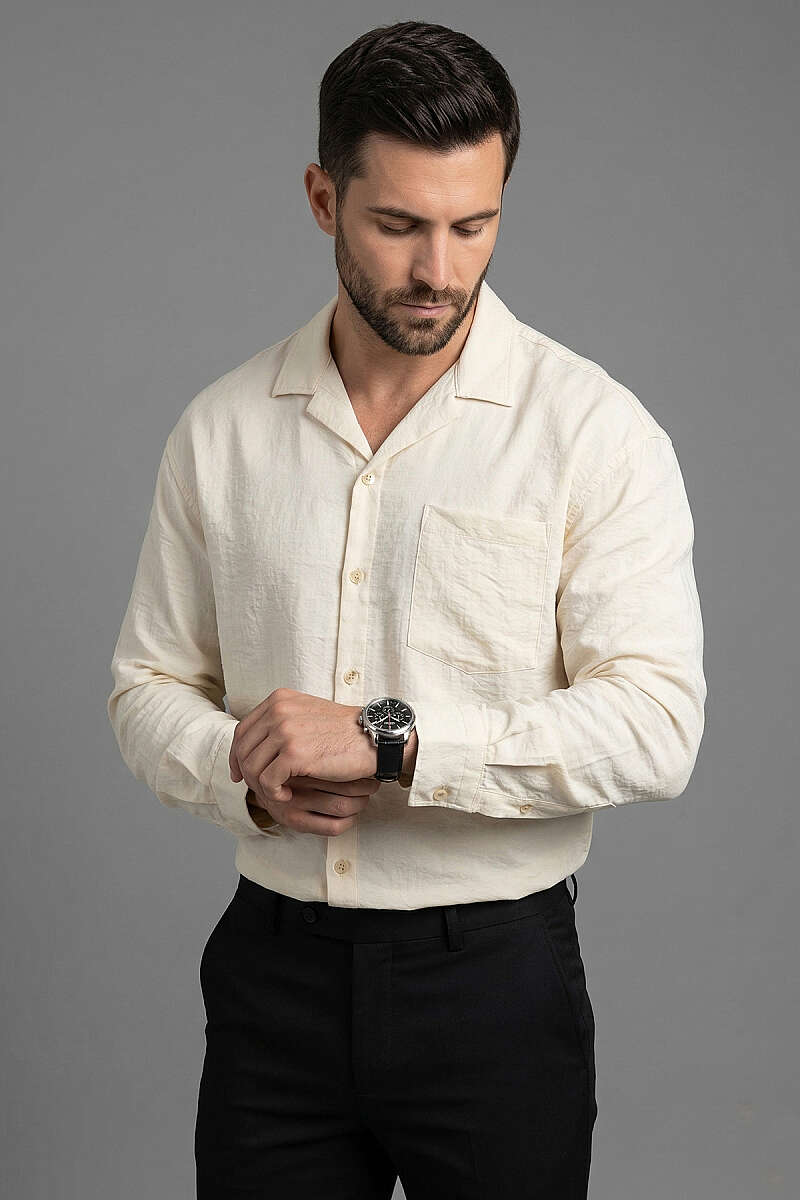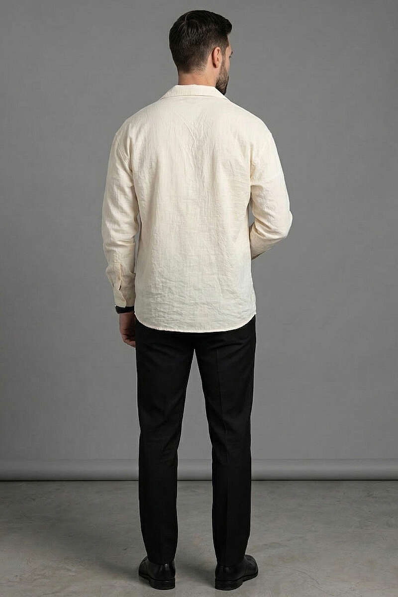Geniş V Yaka Oversize Tek Cep Gömlek Kemik