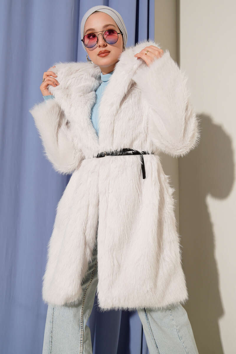 Geniş Yaka Kürklü Uzun Mont Siyah