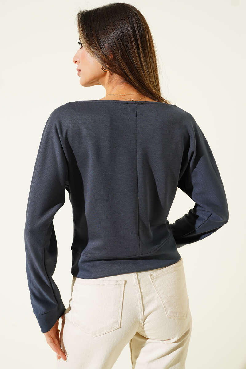 Geniş Yaka Loyşa Bluz Kayrak Grisi