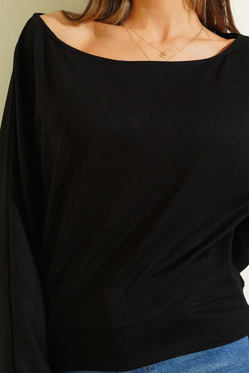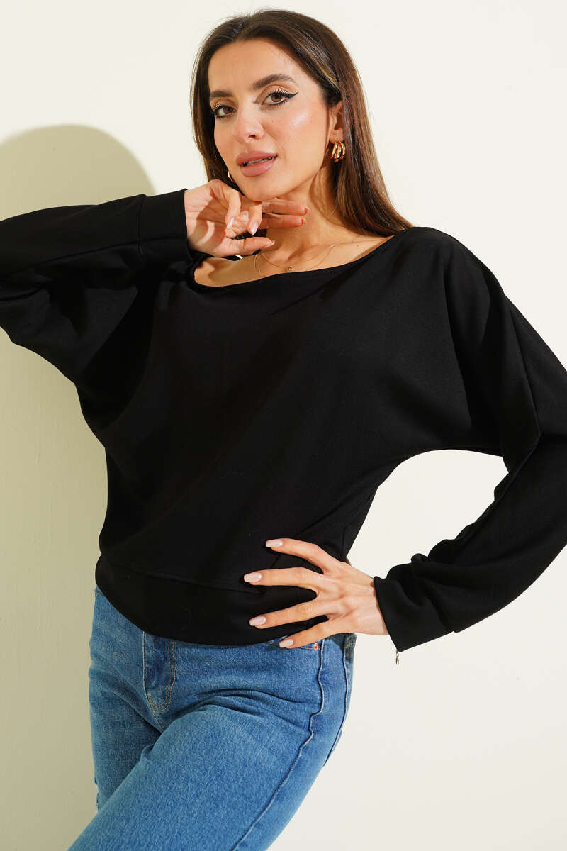 Yan Yırtmaç Detaylı Triko Kazak Siyah