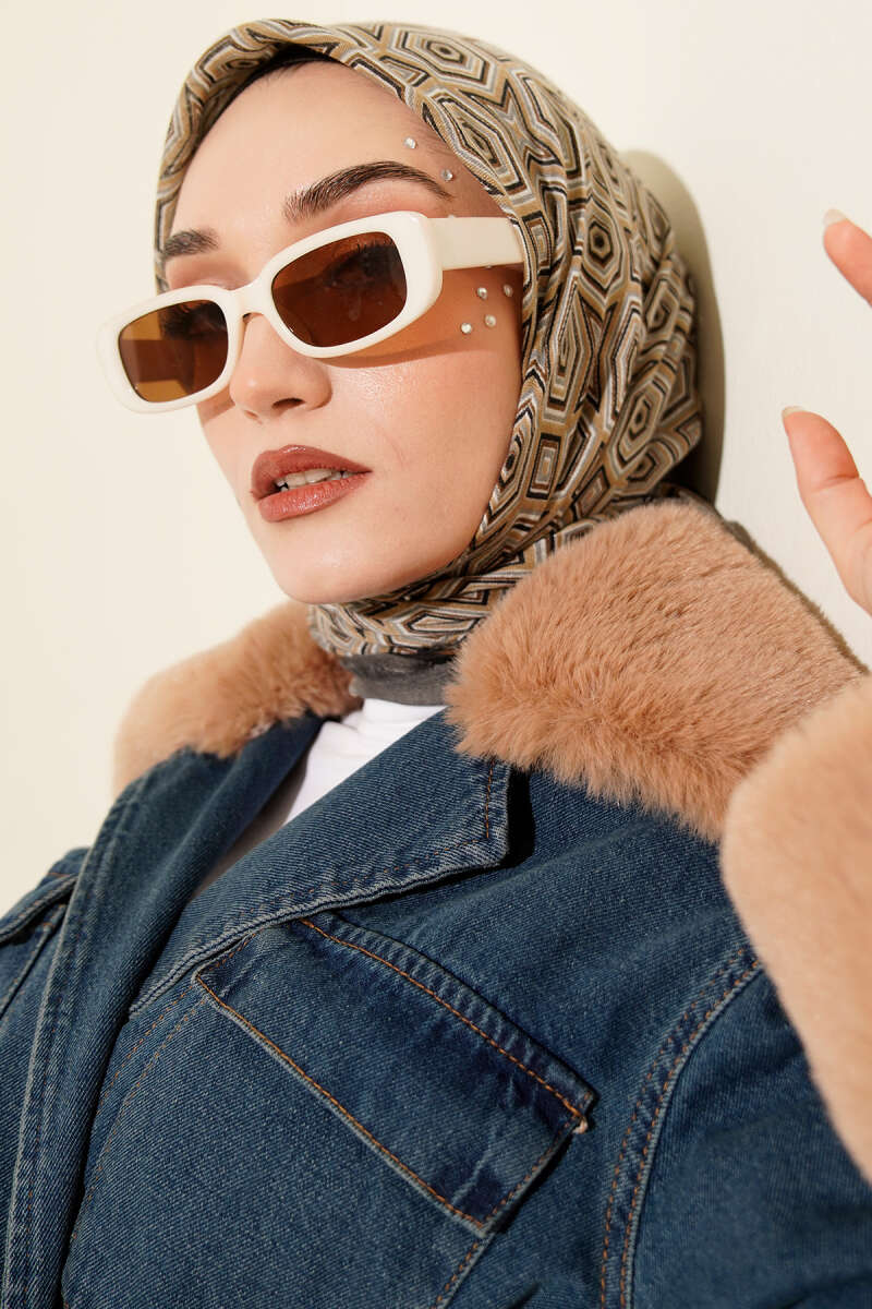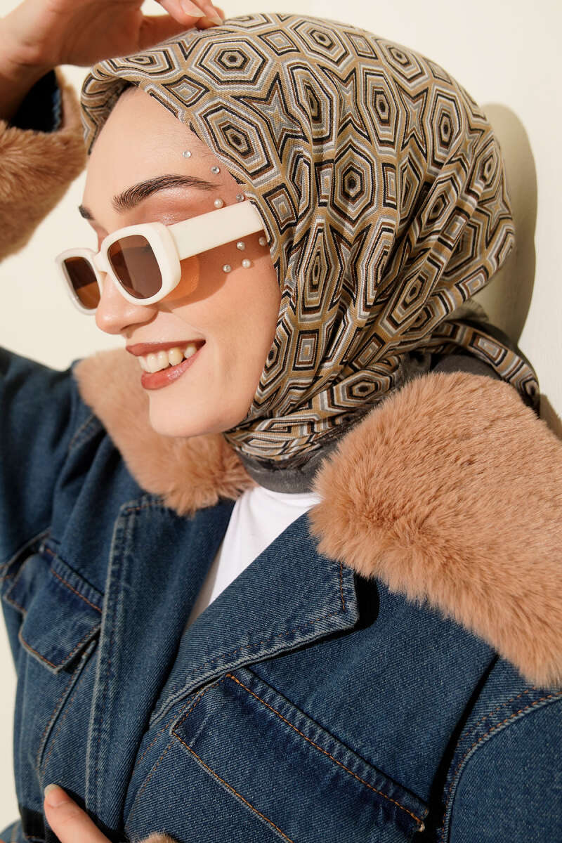 Geometri Desen Flamu Cotton Eşarp Füme