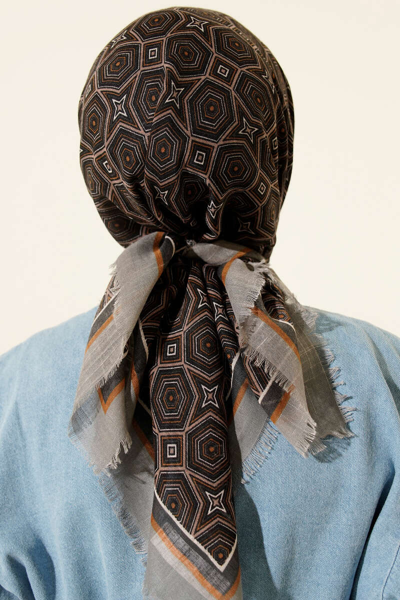 Geometri Desen Flamu Cotton Eşarp Siyah Haki