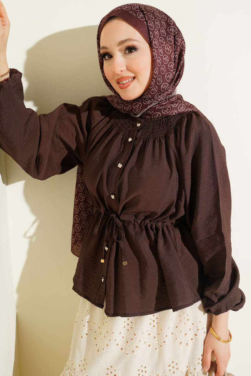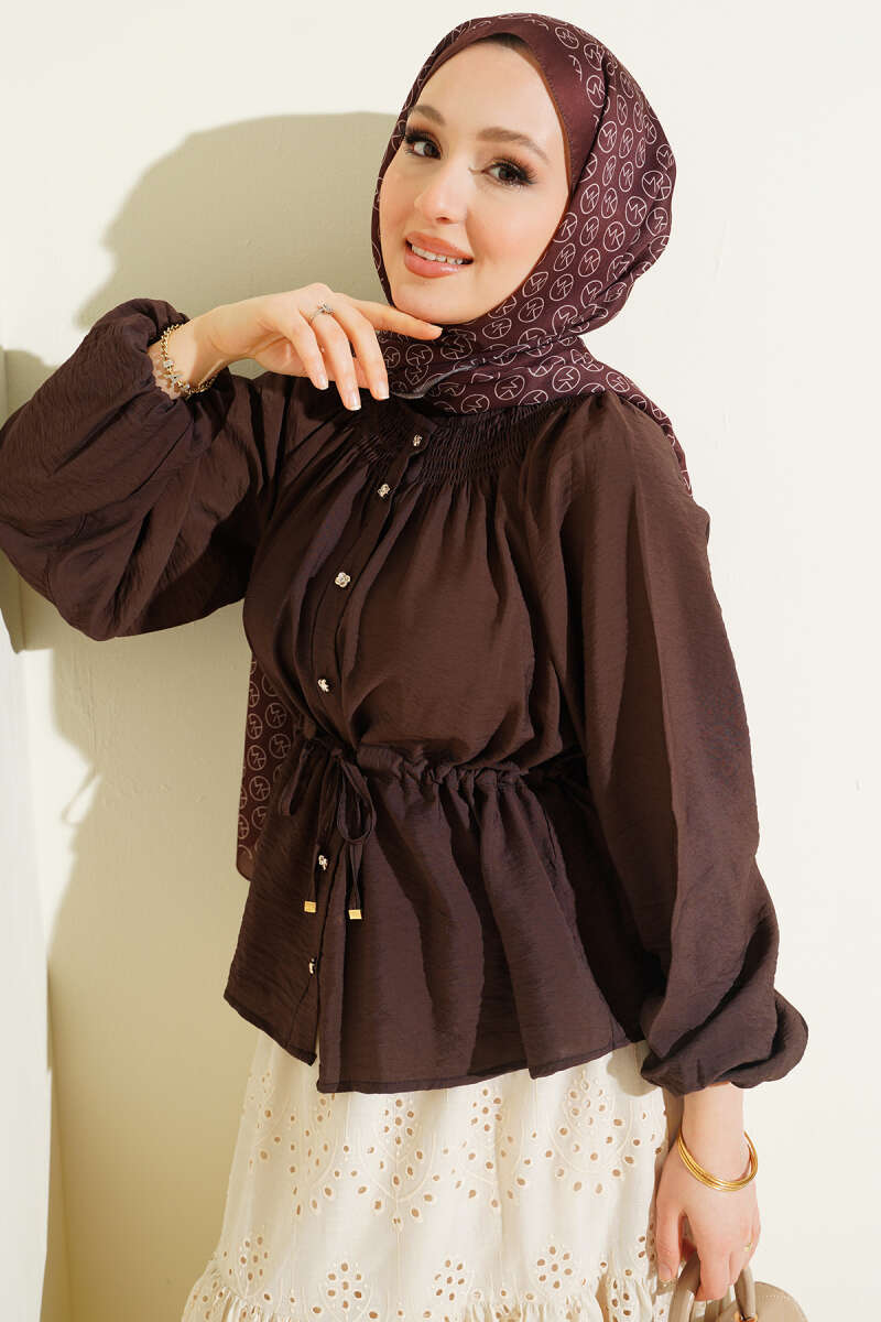 Balıkçı Yaka Büzgülü Bluz Menekşe