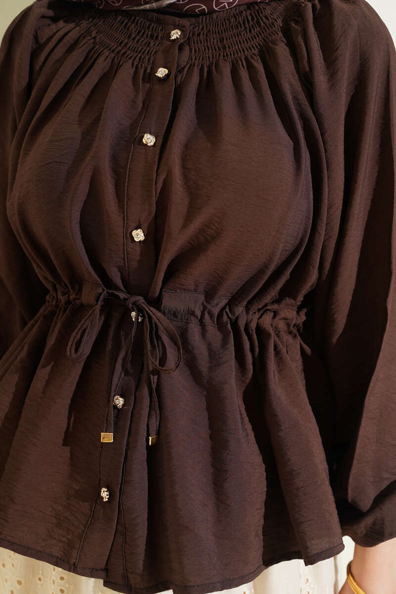 Gipe Yakalı Bel İpli Bluz Lacivert