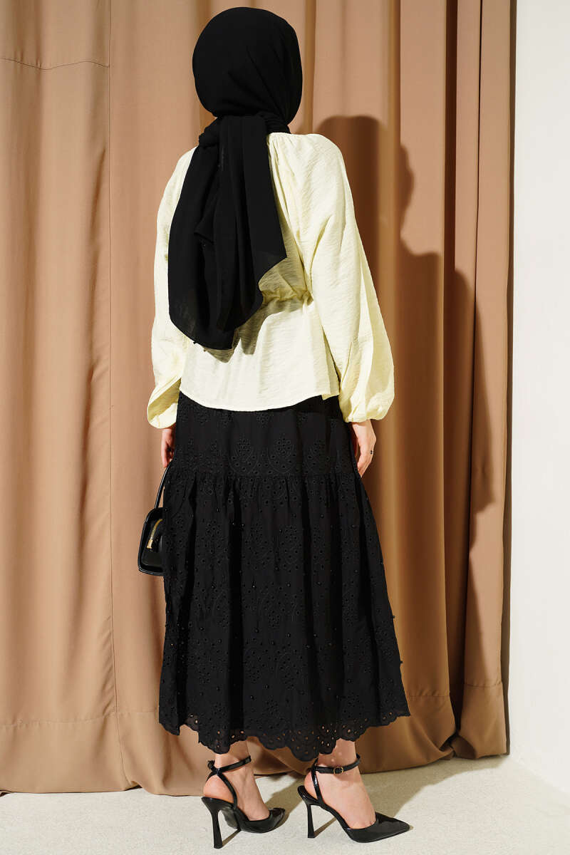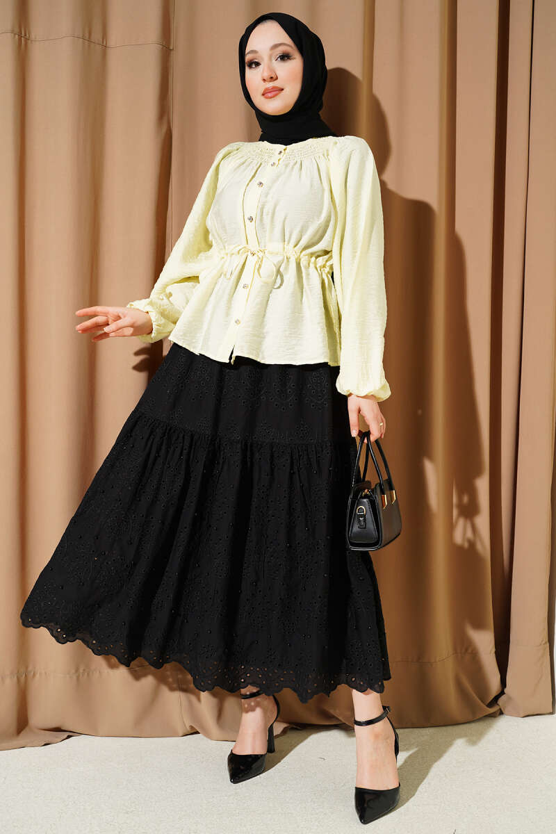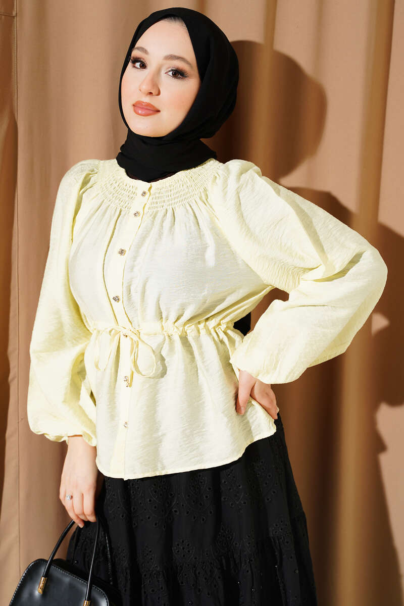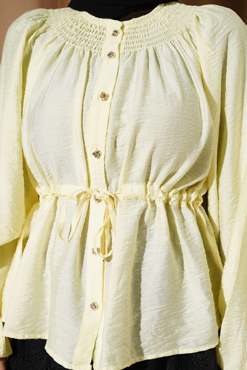 Gipe Yakalı Bel İpli Bluz Çağla Yeşili