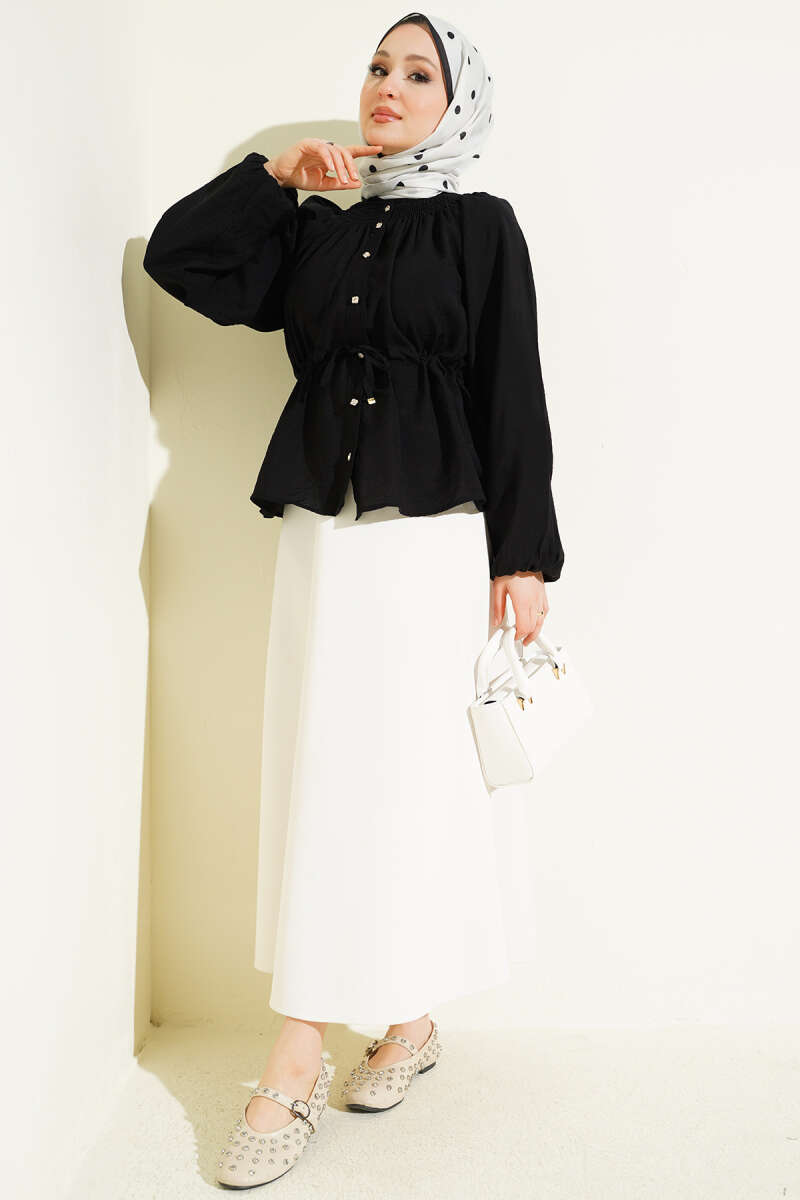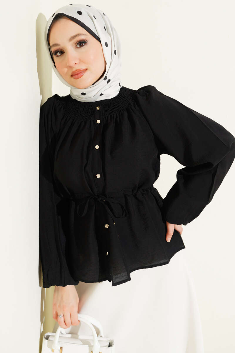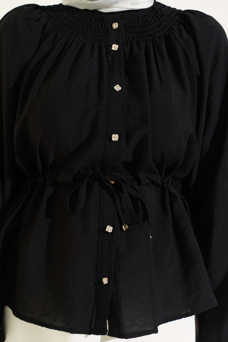 Gipe Yakalı Bel İpli Bluz Lacivert