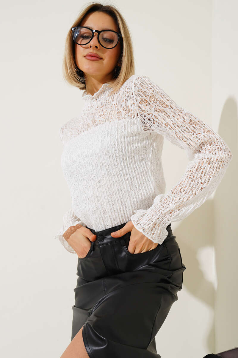 Gipeli Dantel Bluz Beyaz