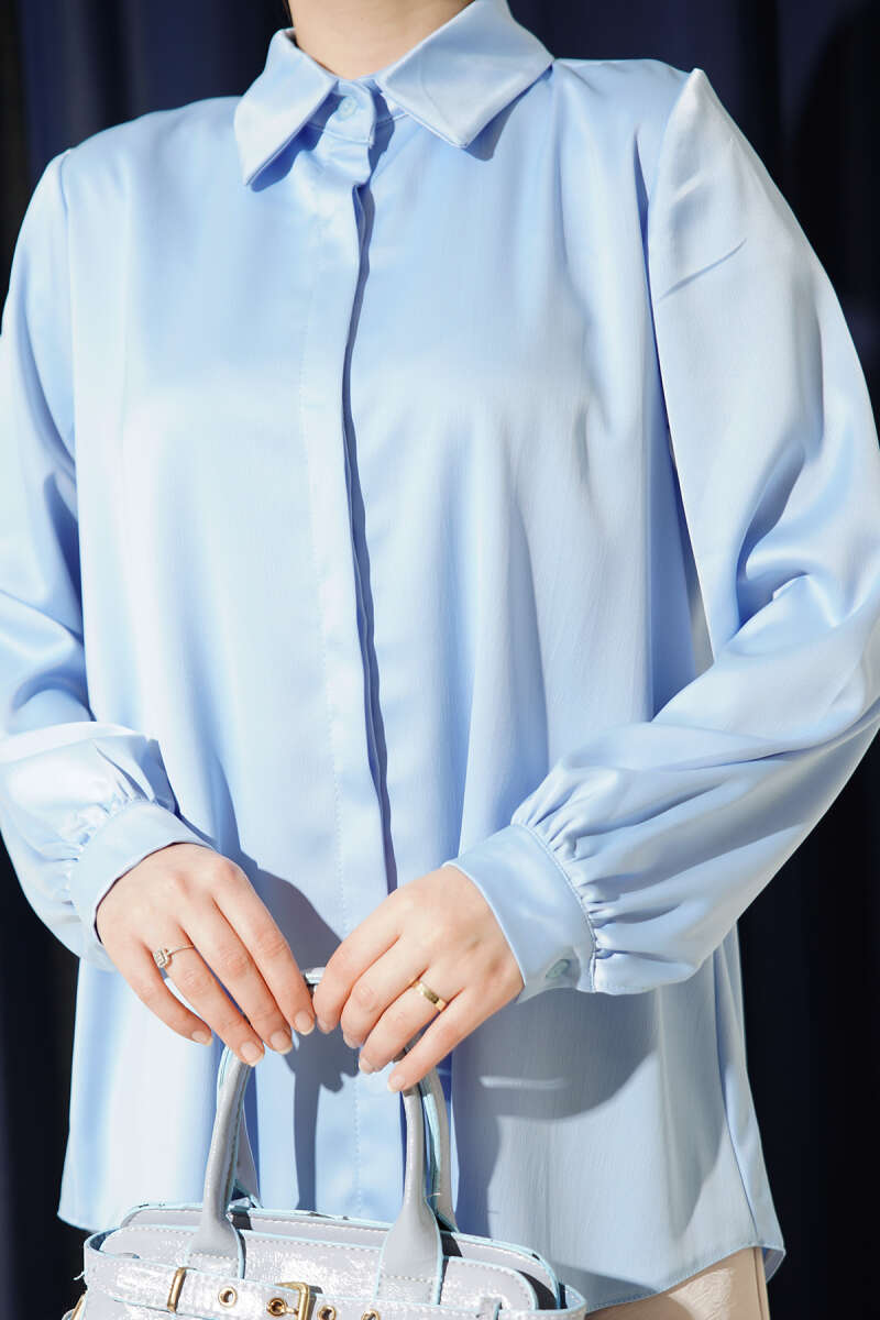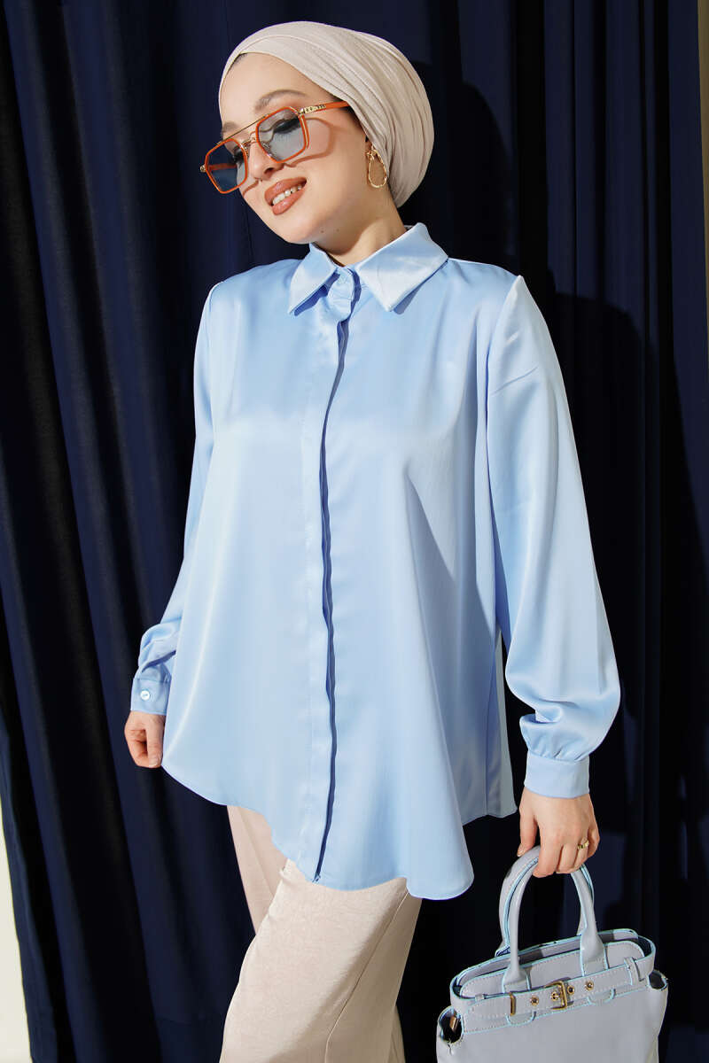 Bel İpli Düşük Omuz Gömlek Lacivert