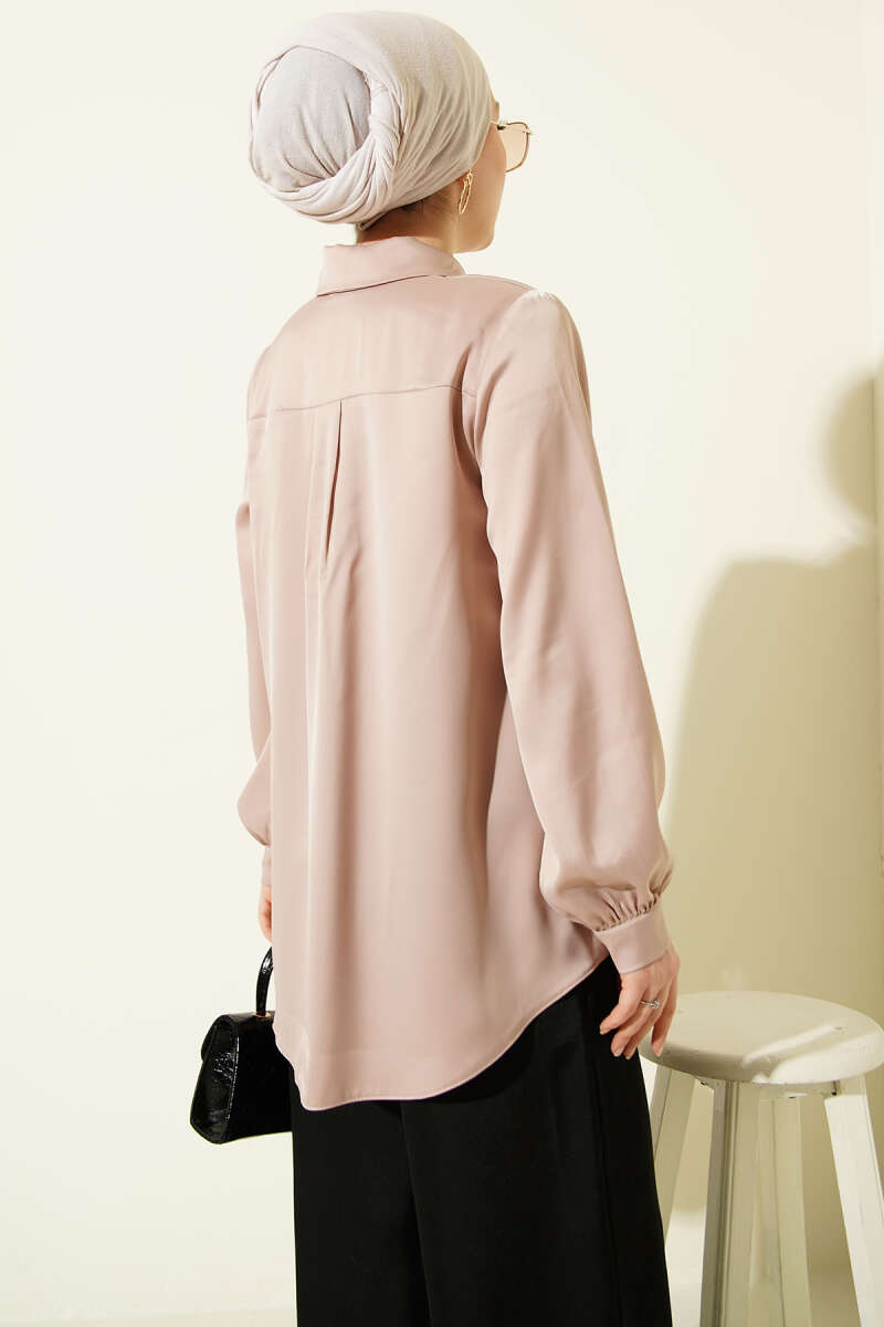 Bel İpli Düşük Omuz Gömlek Lacivert