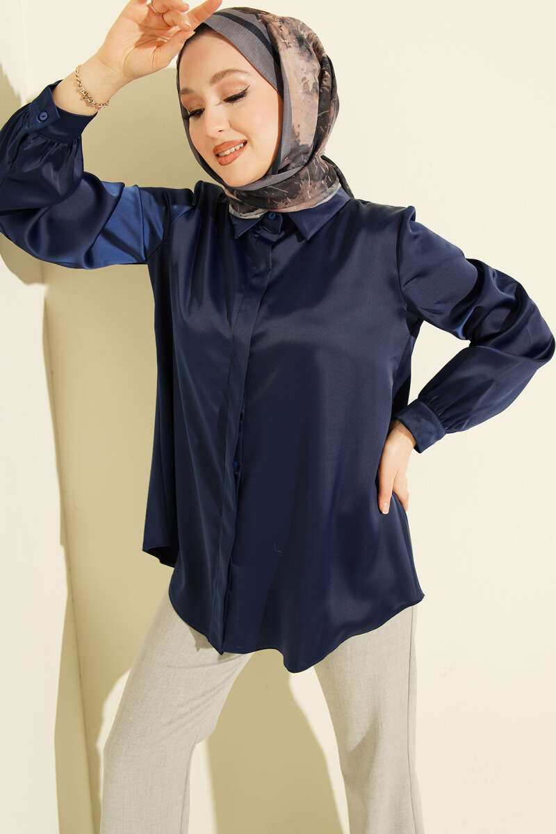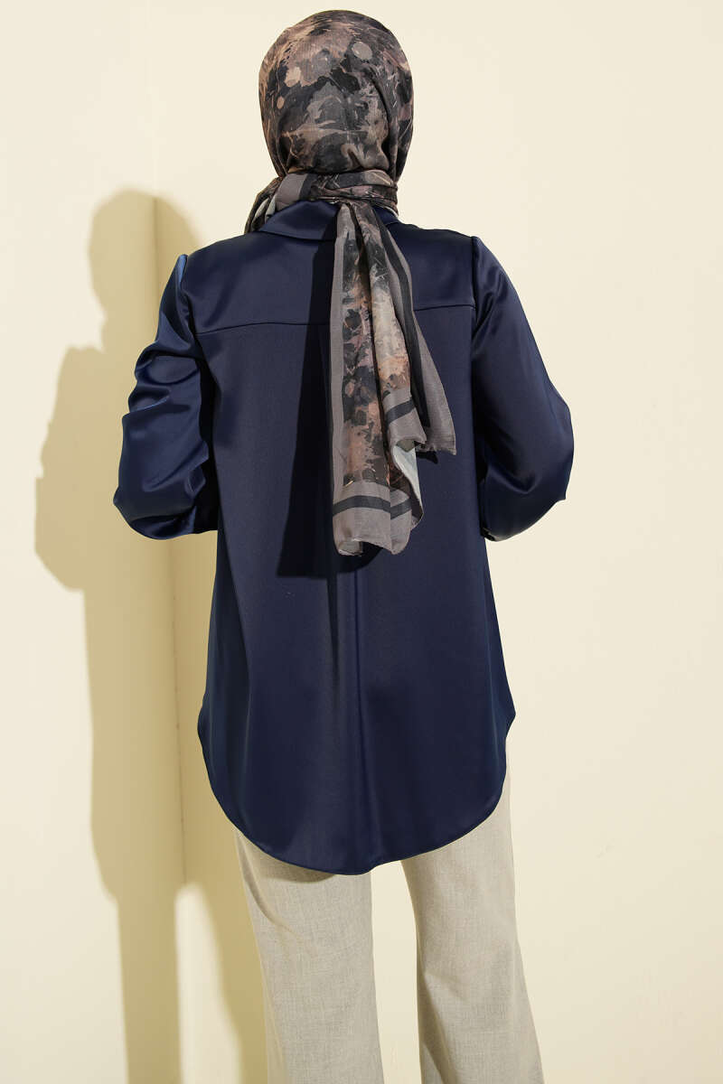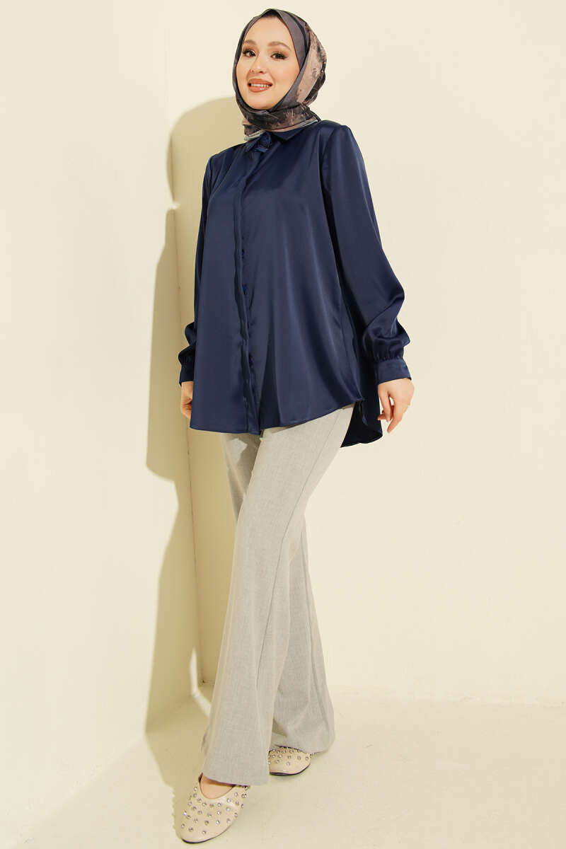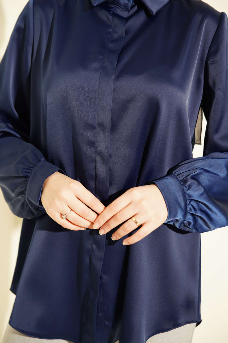 Bel İpli Düşük Omuz Gömlek Lacivert