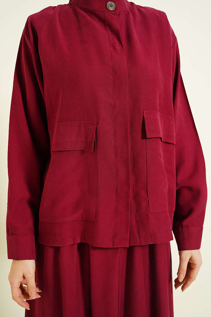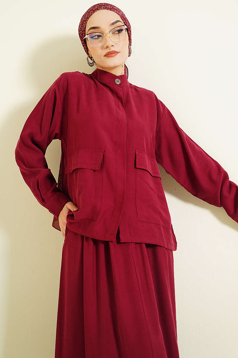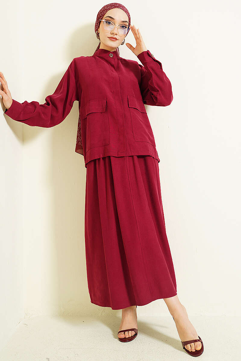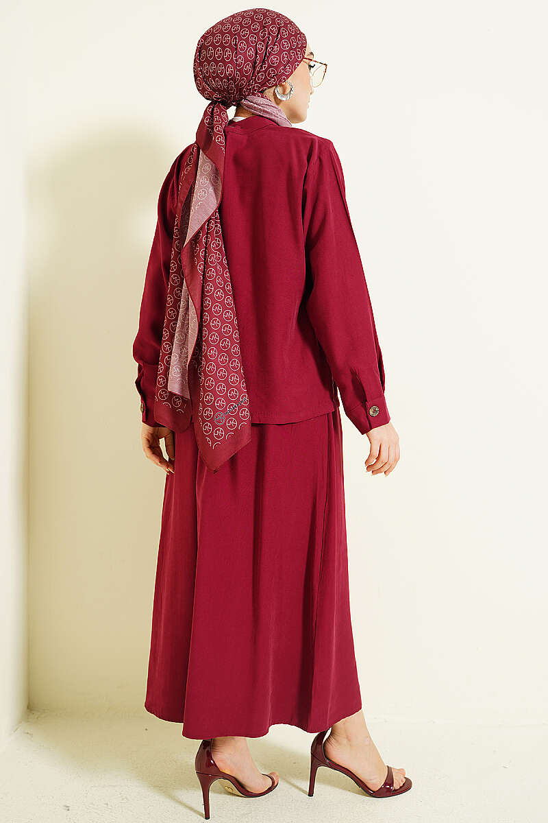 Gizli Düğmeli Etekli Tensel İkili Takım Bordo