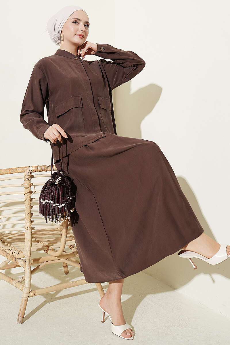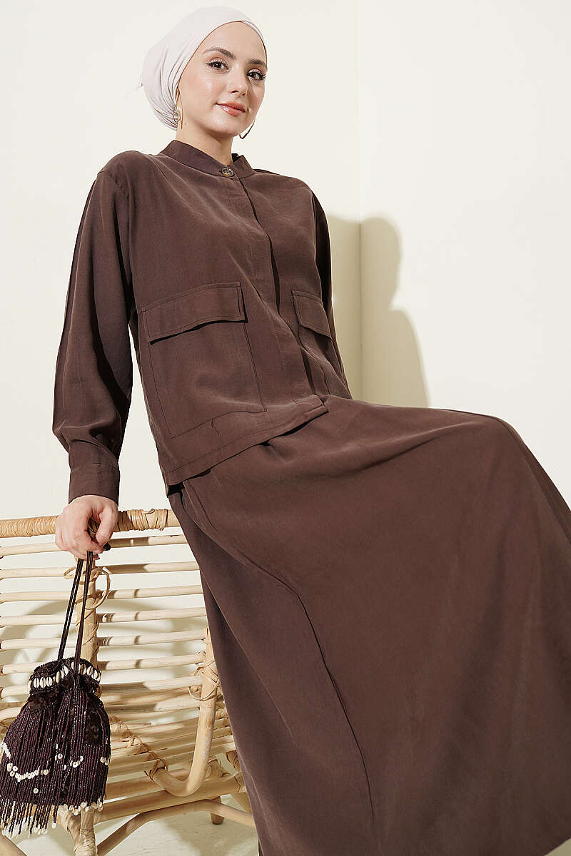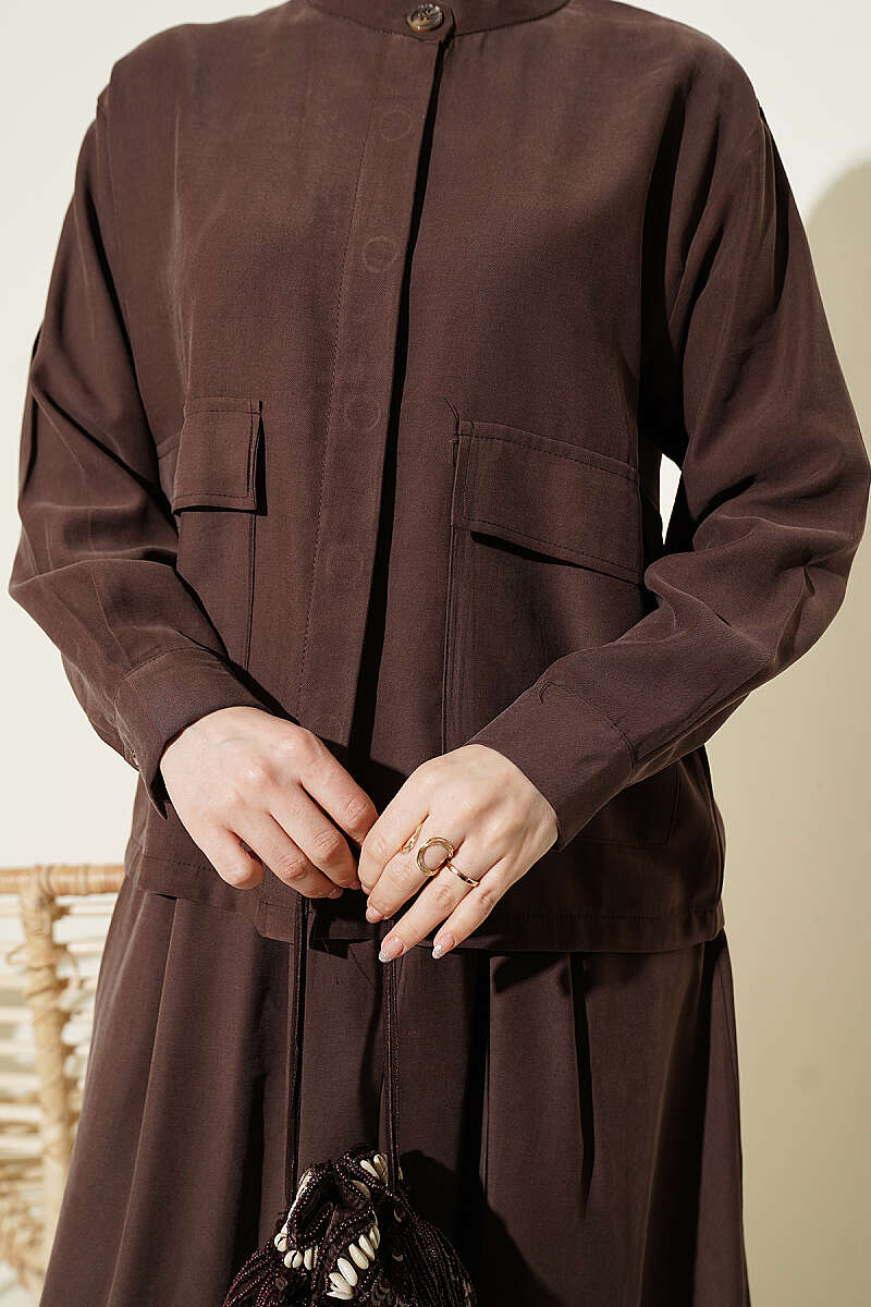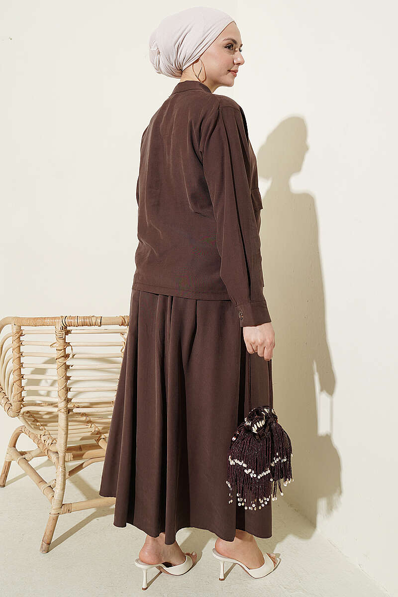 Gizli Düğmeli Etekli Tensel İkili Takım Kahve