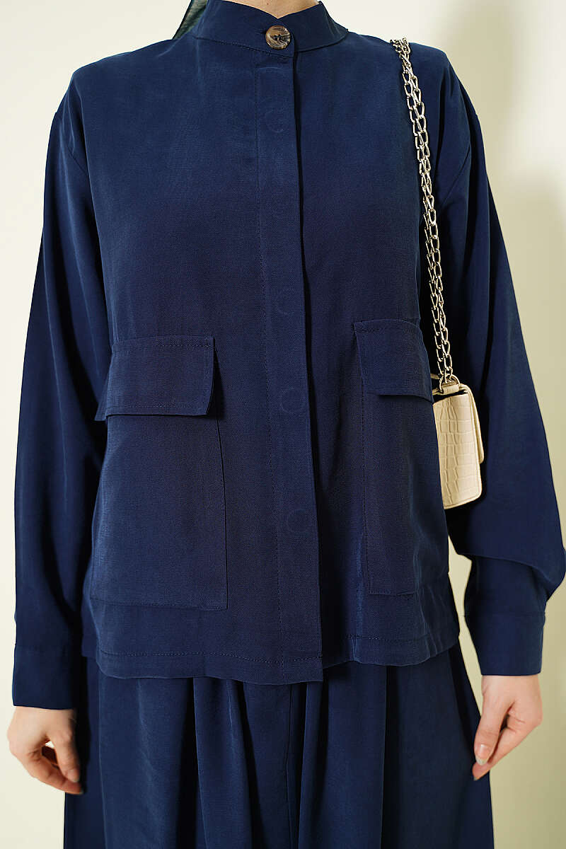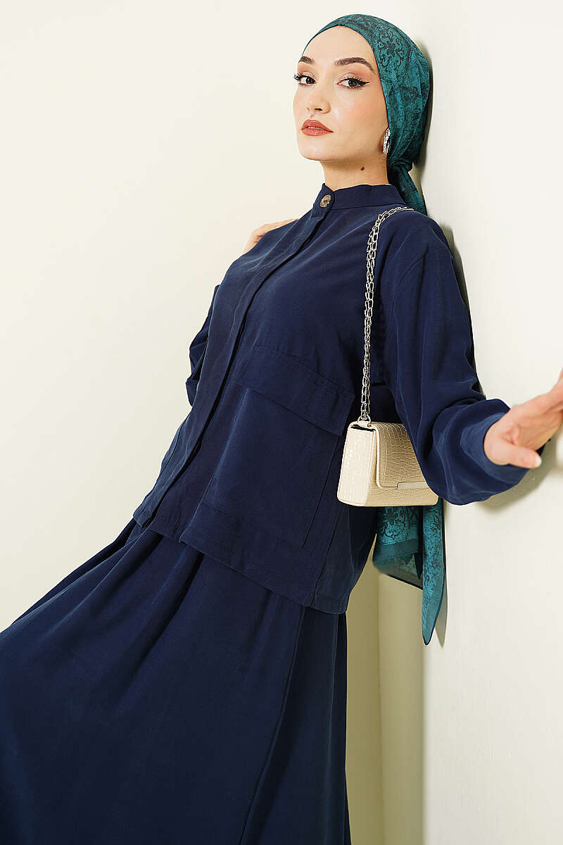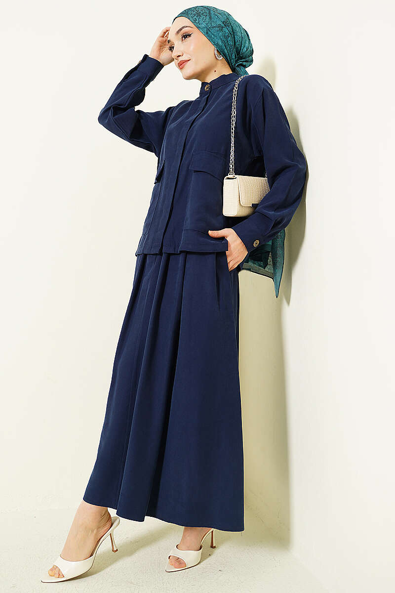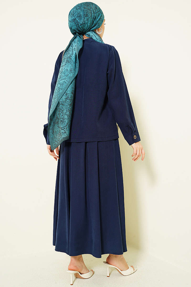 Gizli Düğmeli Etekli Tensel İkili Takım Lacivert