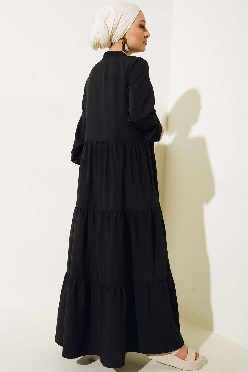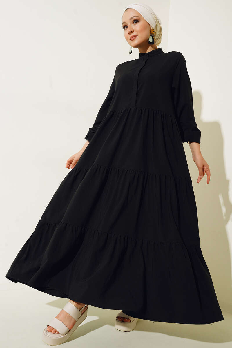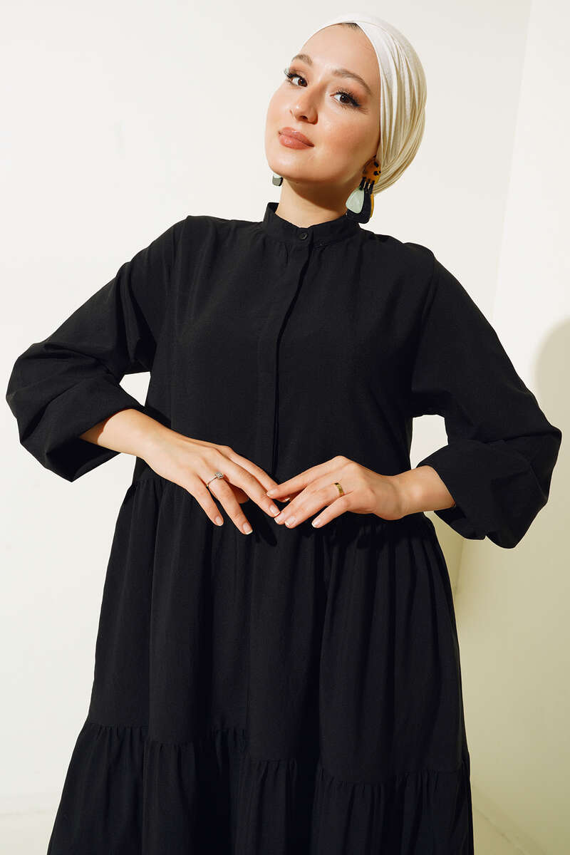 Yeni sezon elbise önü gizli yarım düğmelidir. Bilekleri lastikli olan elbisemiz kat kat modeldir. Tek parçada rahat ve şık olmak isteyen herkesin ilk tercihi olan elbisemiz renk seçenekleriyle harikalar sunmaktadır.
