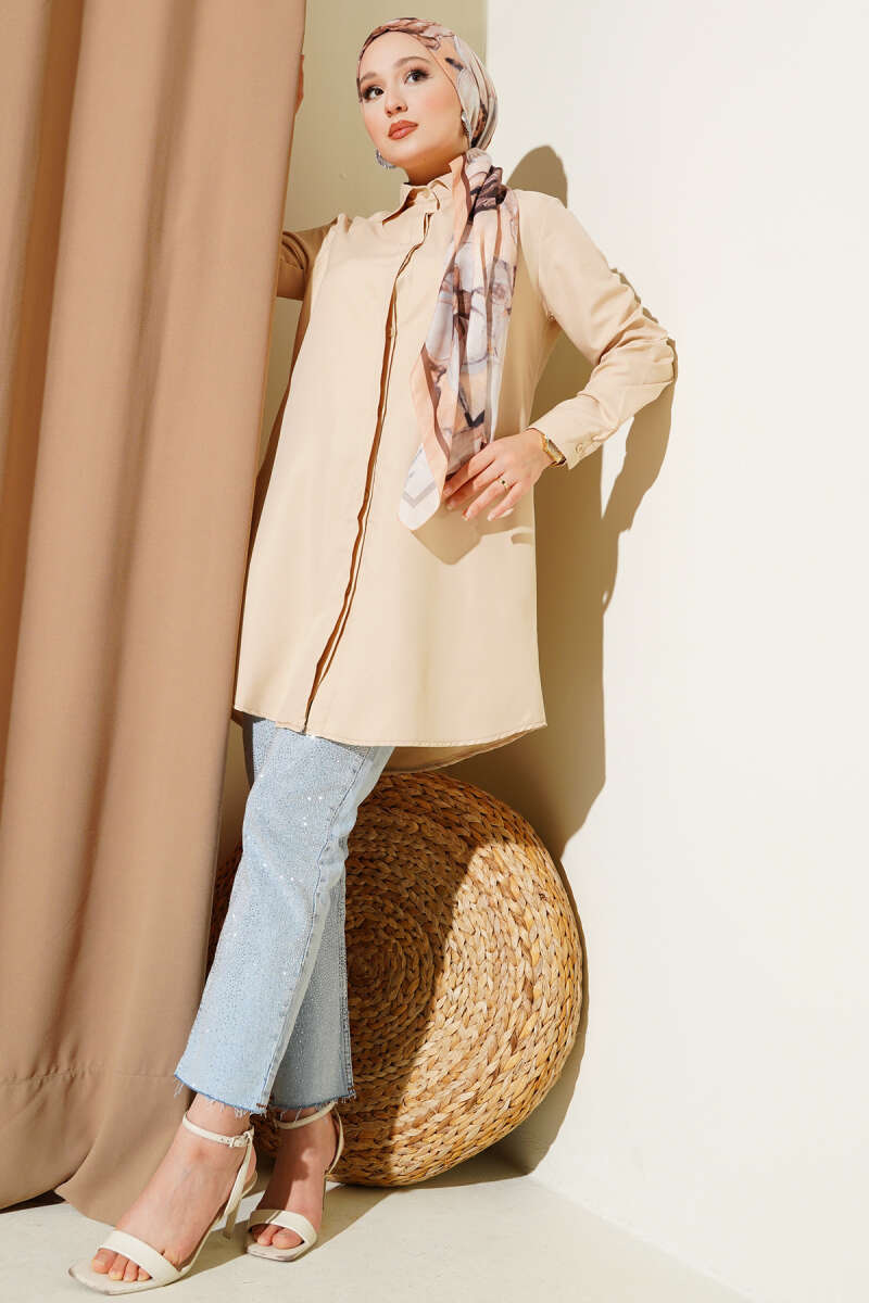 Loyşa Geniş Kollu İp Kuşaklı Tunik Ekru