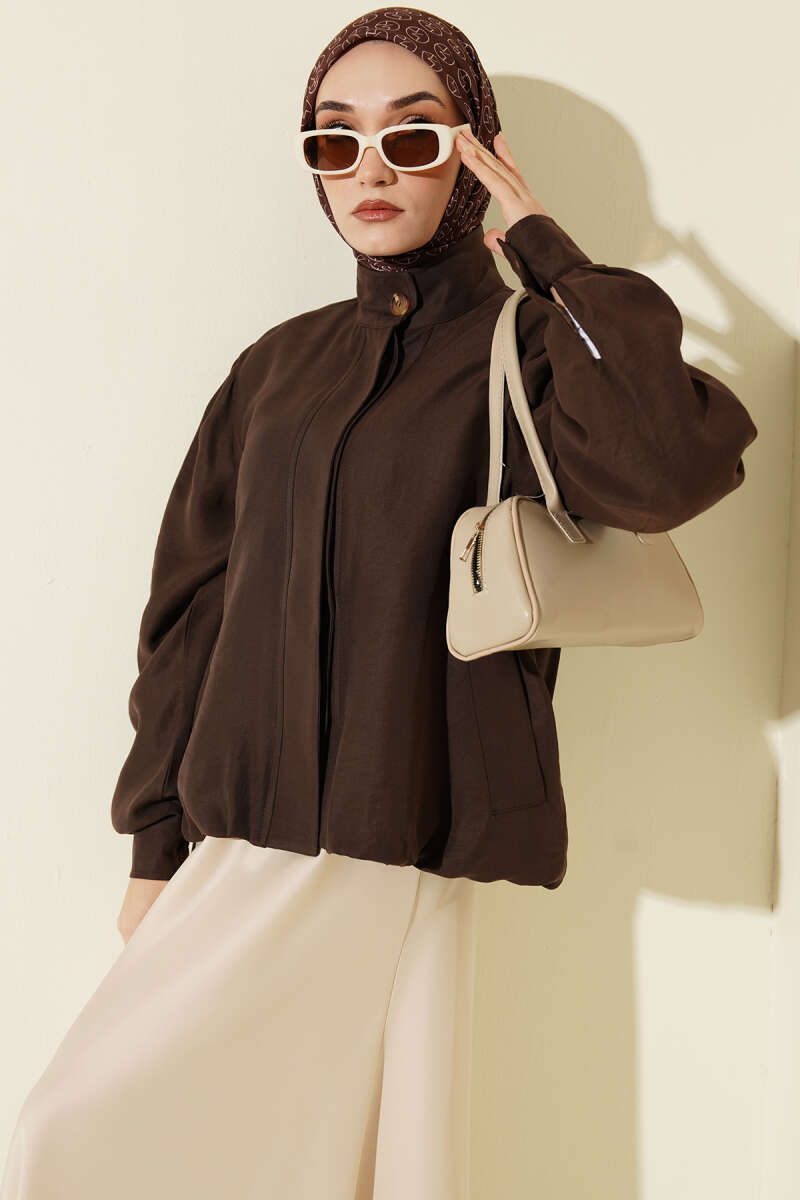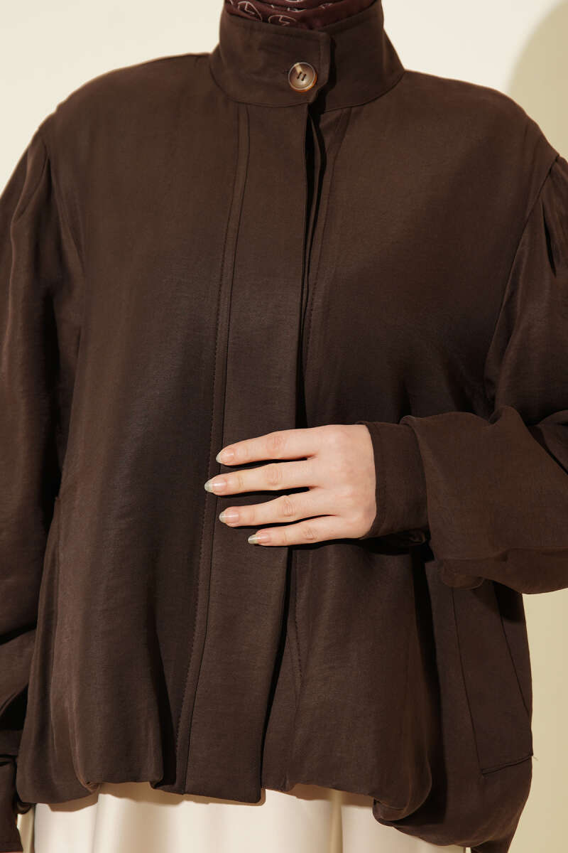 Gizli Düğmeli Modal Bomber Ceket Kahve