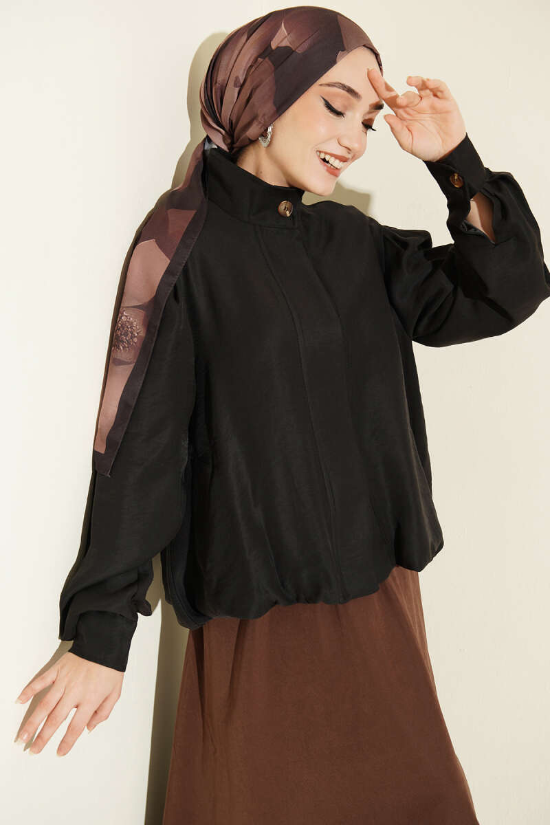 Gizli Düğmeli Modal Bomber Ceket Kahve