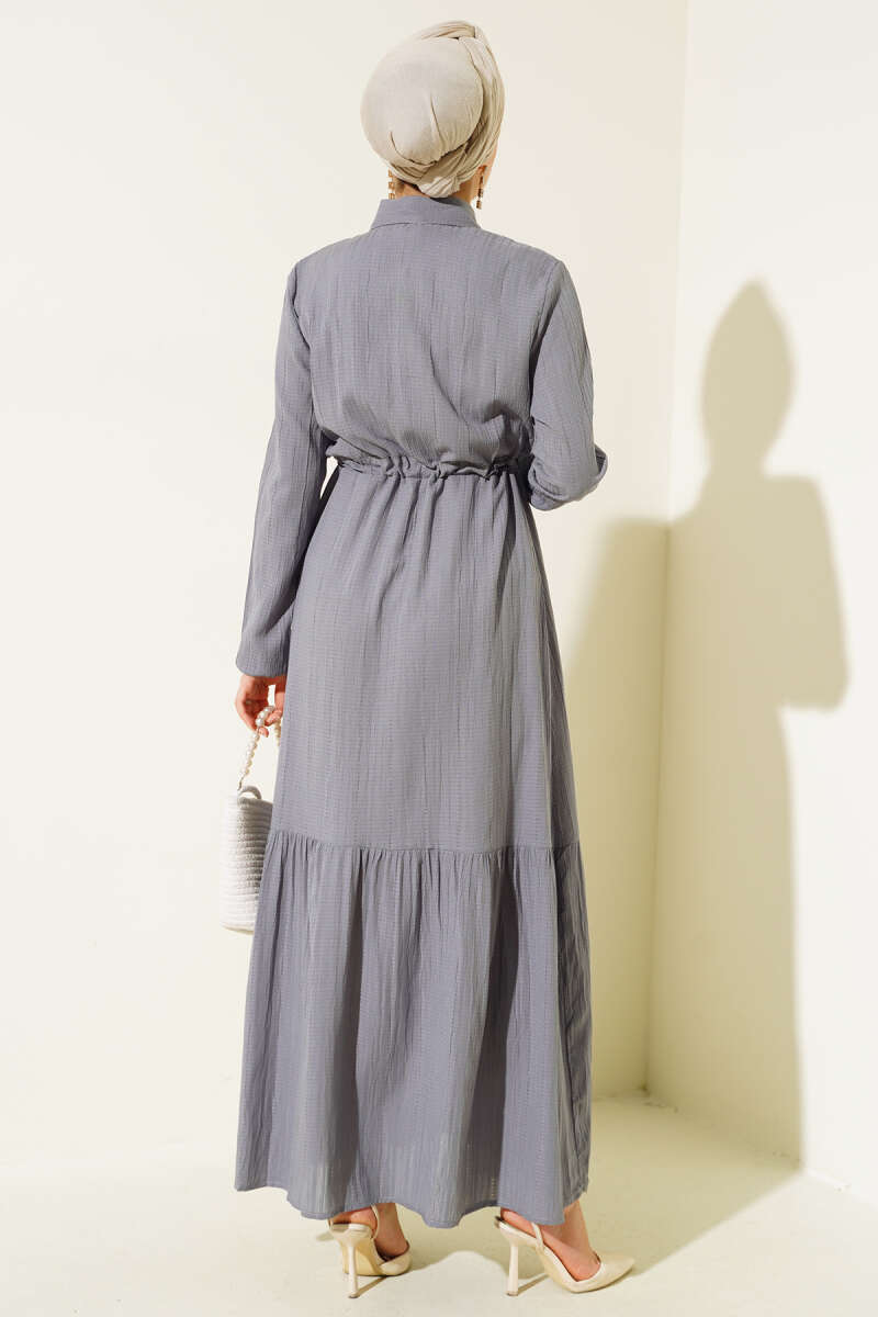 Metal Düğmeli Kolsuz Kot Elbise Koyu Mavi