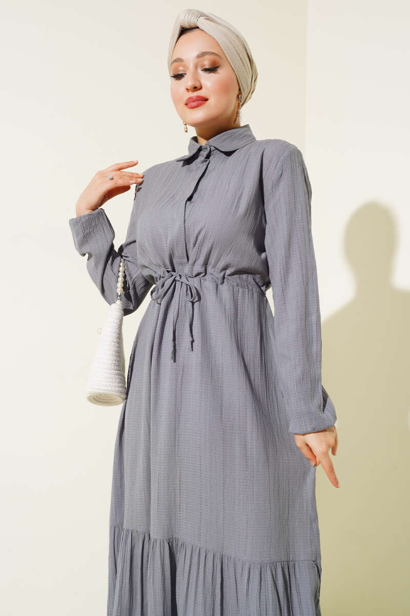 Çift İp Kuşaklı Ekoseli Elbise Siyah