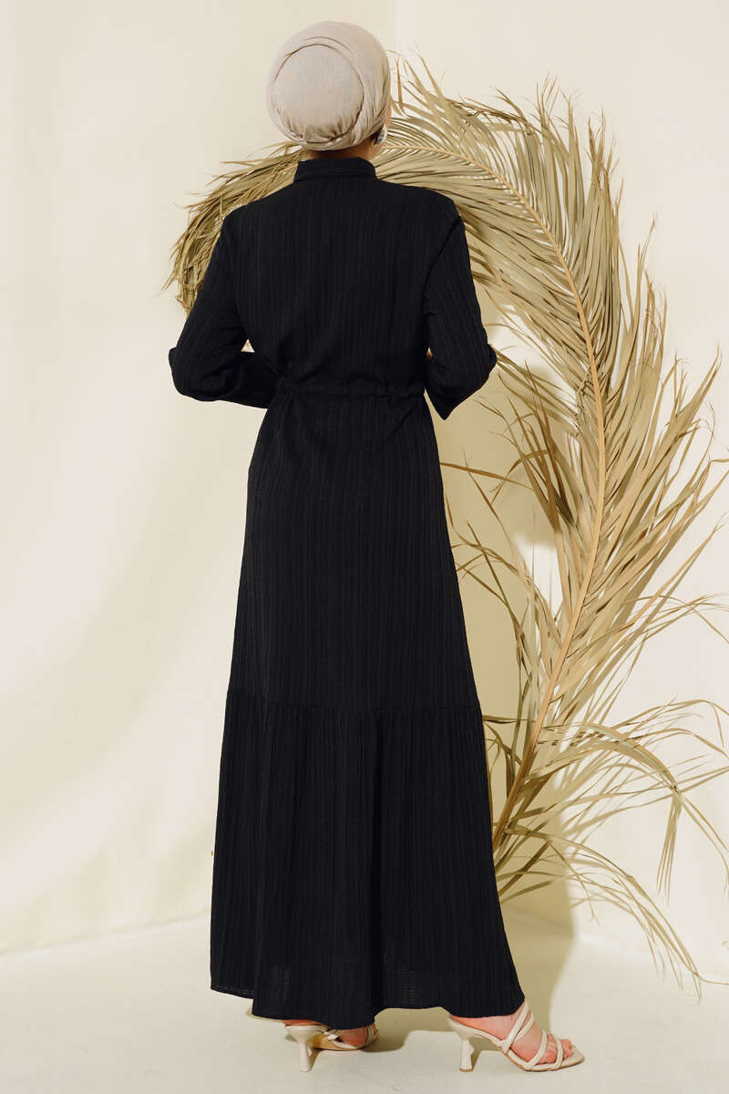 Gizli Yarım Düğmeli Elbise Siyah