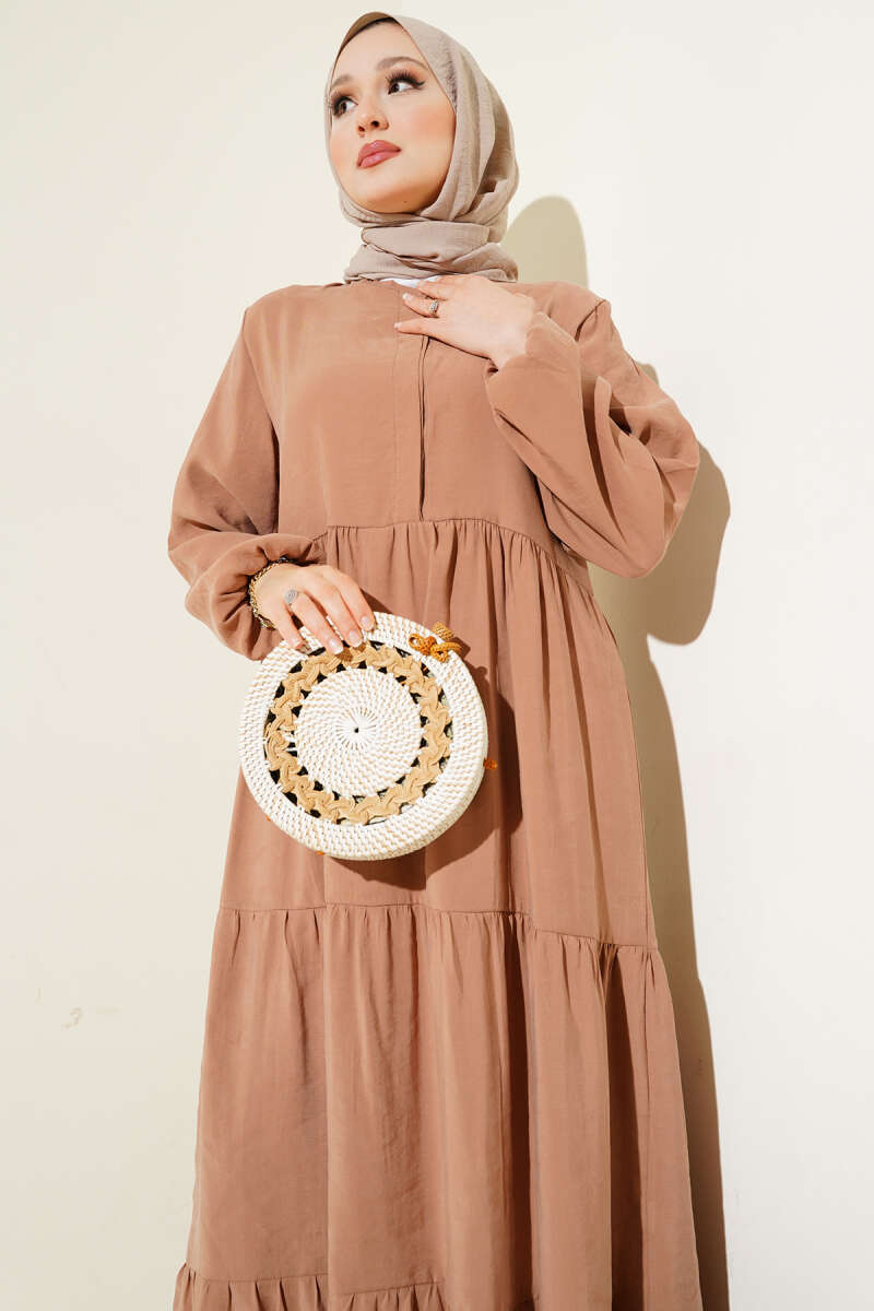 Yarım Yaka Fermuarlı Scuba Elbise Kahve