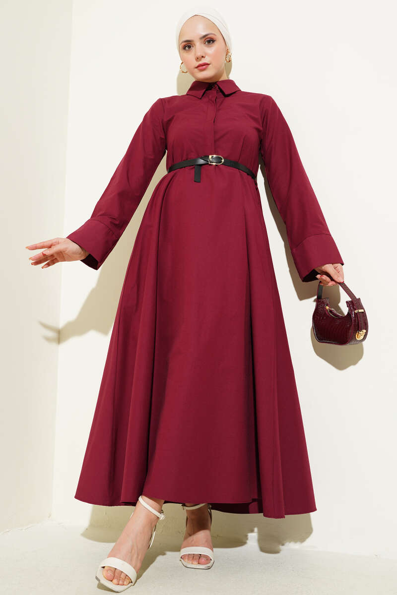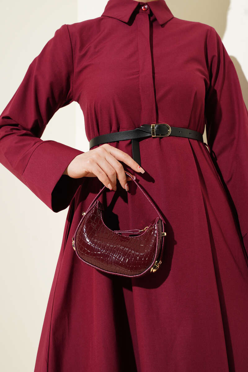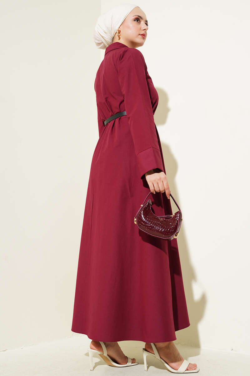 Pelerin Detaylı Pileli Triko Elbise Bordo