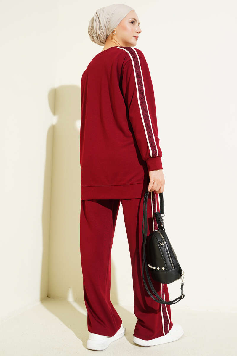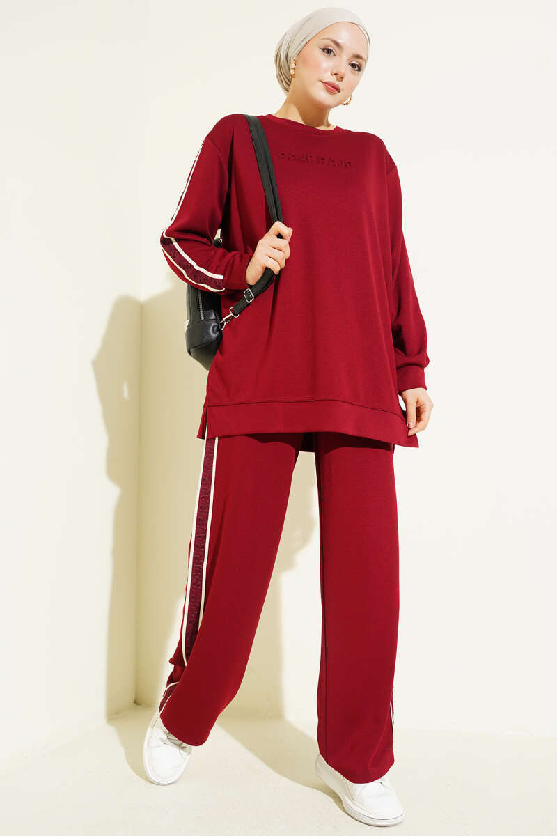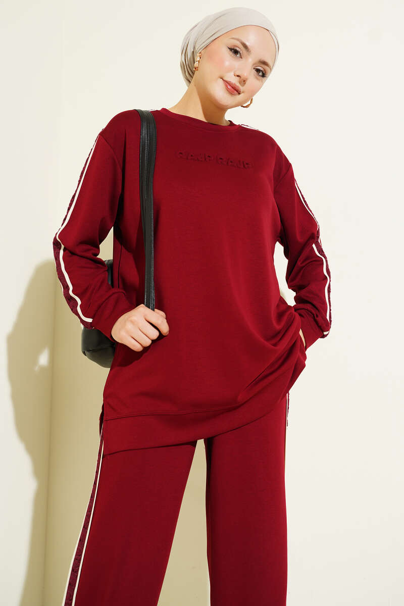 Gofre Loyşa Şeritli İkili Takım Bordo