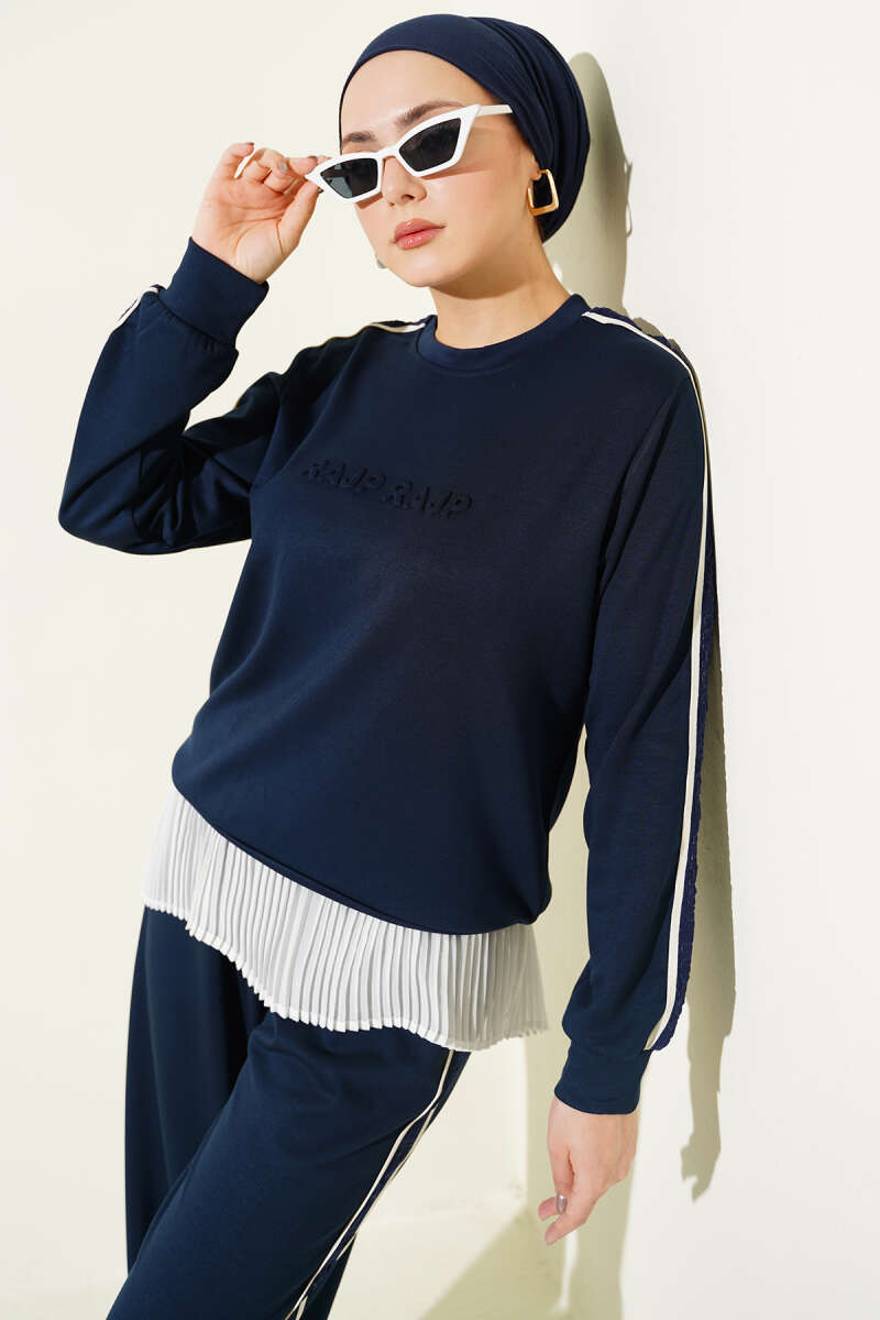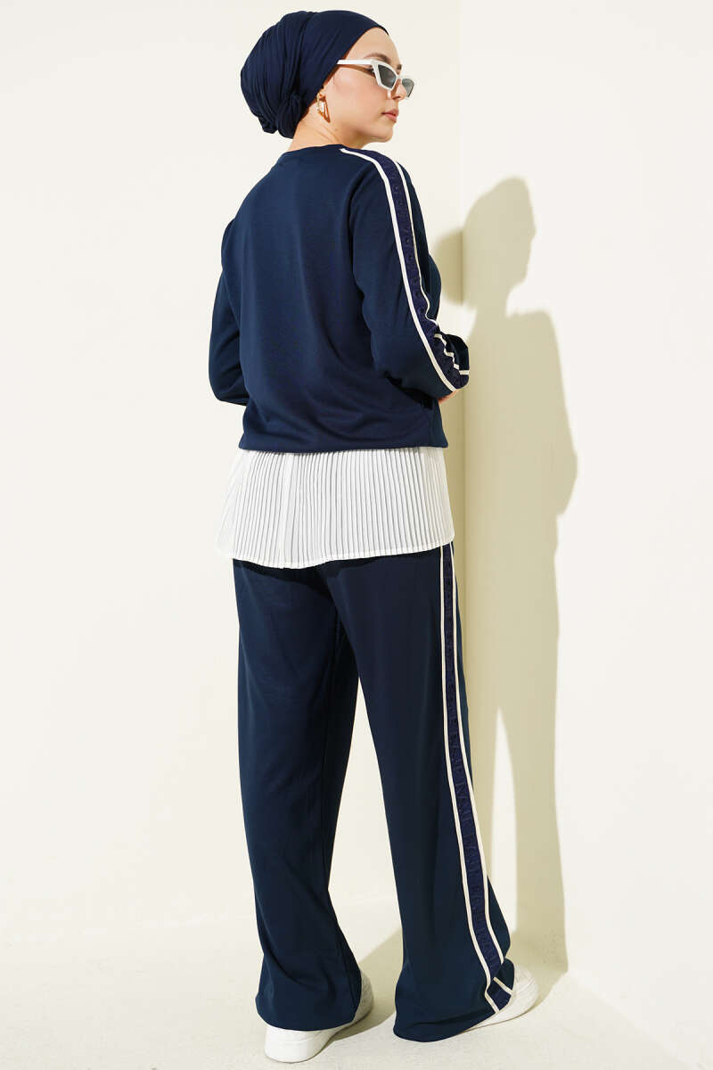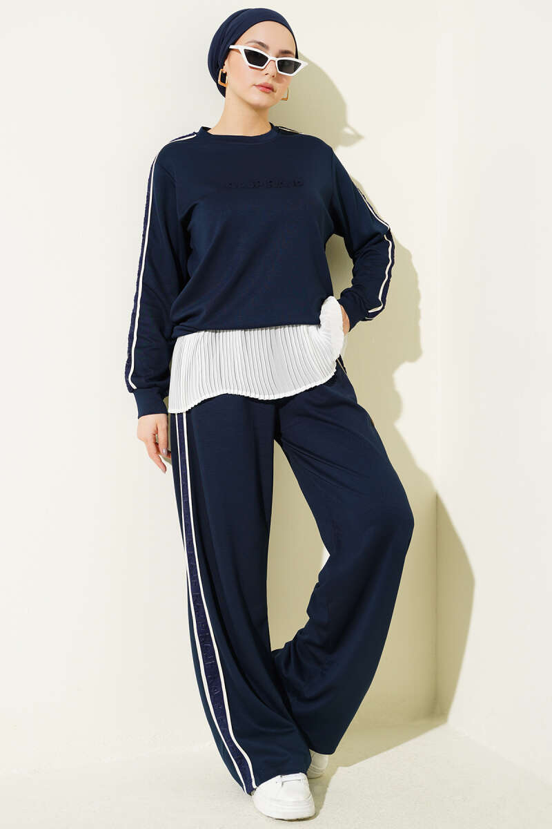 Gofre Loyşa Şeritli İkili Takım Lacivert
