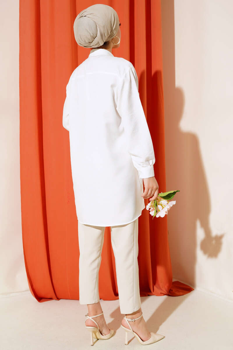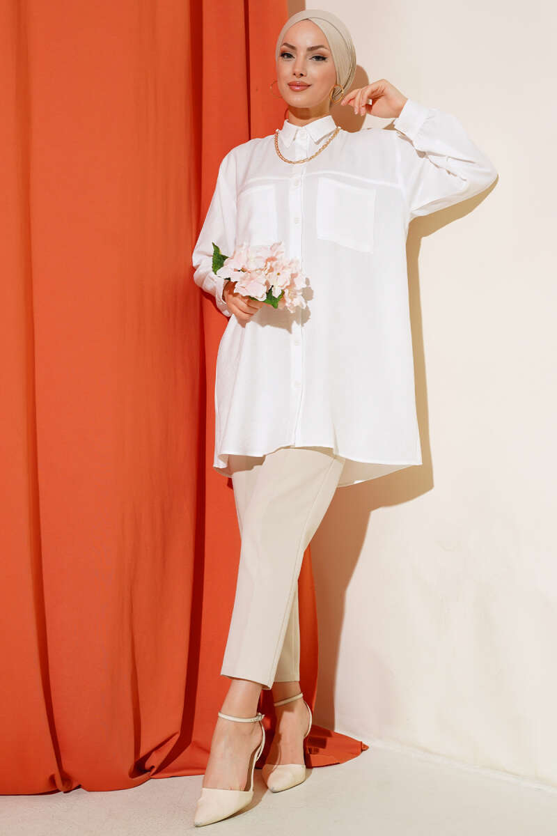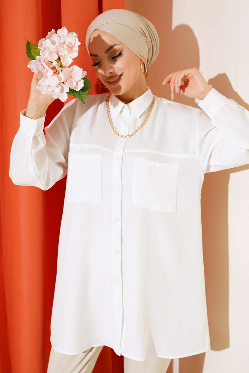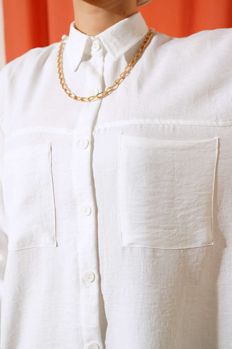 Göğsü Çift Cepli Salaş Gömlek Ekru